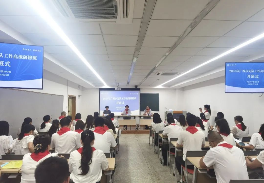 6月26日至29日,2023年广西少先队工作高级研修班在西南大学举办,广西少工委副主任、部分市县少工委主任、少年部部长、少先队总辅导员、少先队名师工作室带头人、红领巾巡讲团成员及少先队工作者代表共50人参加培训。共青团广西区委副书记谢建伟出席开班式并讲话。