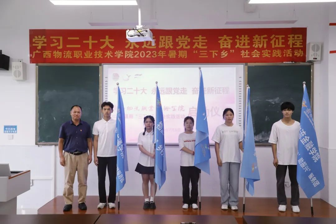 为深入学习贯彻党的二十大精神,不断推动实践育人工作,7月5日下午,广西物流职业技术学院“学习二十大 永远跟党走 奋进新征程”2023年暑期“三下乡”社会实践出征仪式在鹏山北楼103教室顺利举行。学院党委副书记杨一笔出席仪式,校团委书记党宇波主持出征仪式。