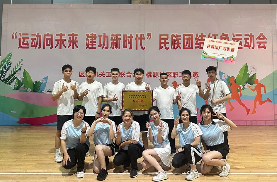 7月22日,广西区直机关工会联合会组织桃源片区职工之家成员单位在李宁体育园开展“运动向未来 建功新时代”民族团结红色运动会。来自自治区党委老干部局、自治区财政厅等10家单位干部职工队伍参赛。共青团广西区委代表队精诚团结、齐心协力,经过4个比赛项目的激烈角逐,最终斩获运动会二等奖。