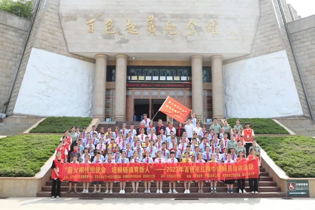 7月24日,由自治区关工委、百色市关工委、共青团百色市委员会、百色起义纪念园管理中心、百色市少工委主办的“薪火相传担使命 培根铸魂育新人”——2023年百色市红领巾讲解员培训活动开班仪式在百色起义纪念馆举行,76名少先队员前来报到,学员来自百色市区16所小学,正式开启他们的成长之路。
