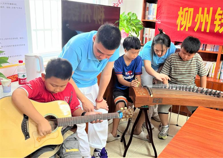 图 服务团在苗家小镇青年之家给当地留守儿童上音乐课