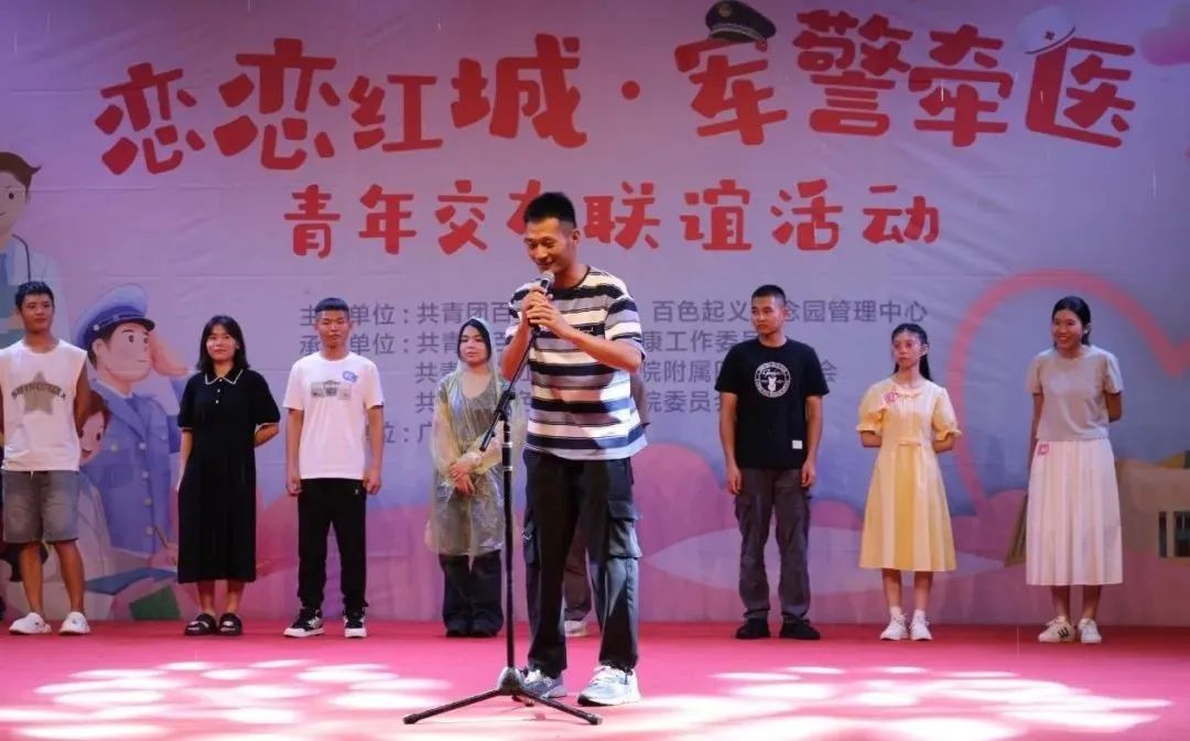 8月1日,共青团百色市委员会、百色起义纪念园管理中心、百色市卫生健康团工委、右江民族医学院附属医院团委、百色市人民医院团委、广西非攻集团于百色市解放街联合举办百色市“恋恋红城·军警牵医”青年交友联谊活动。