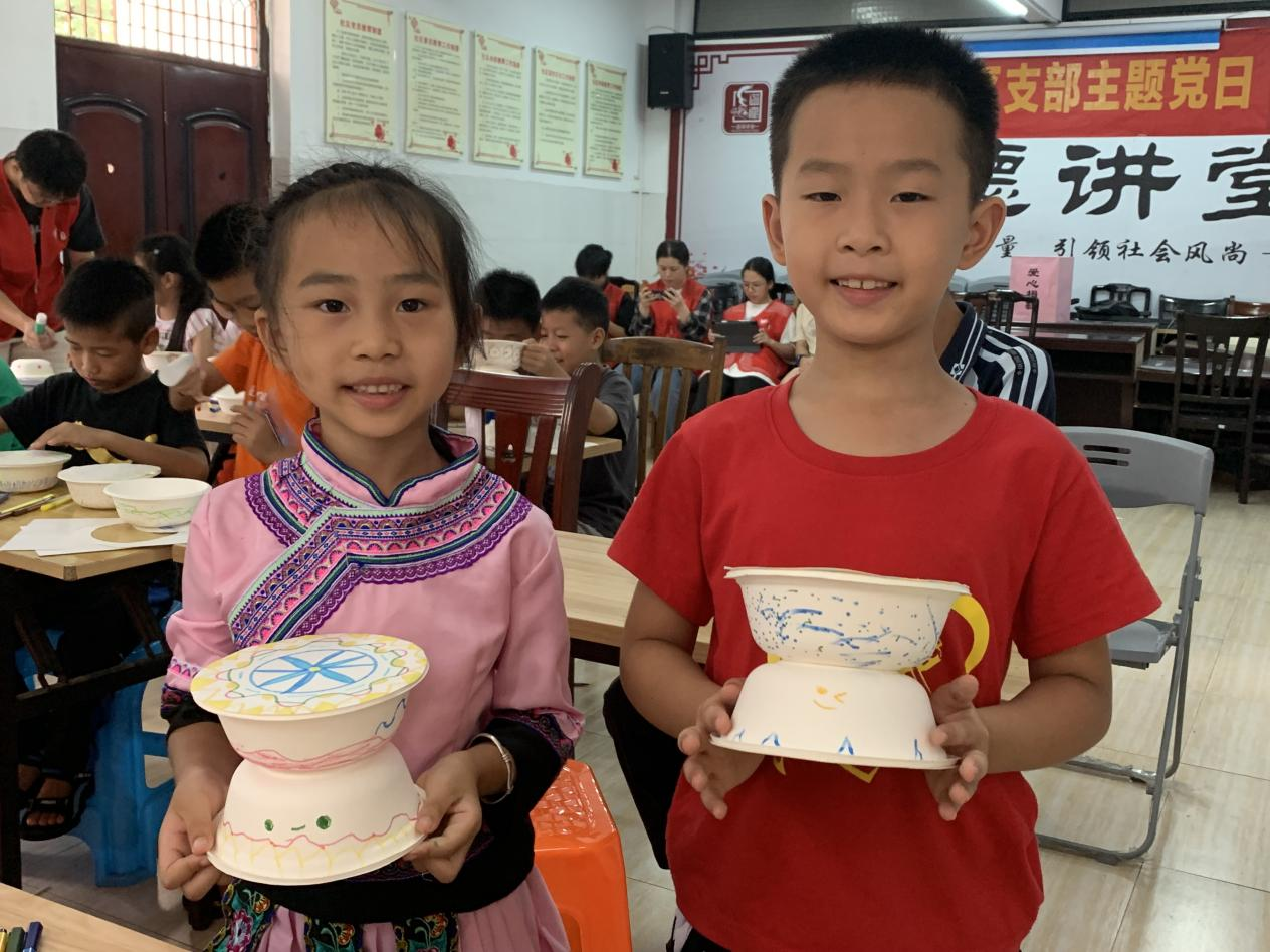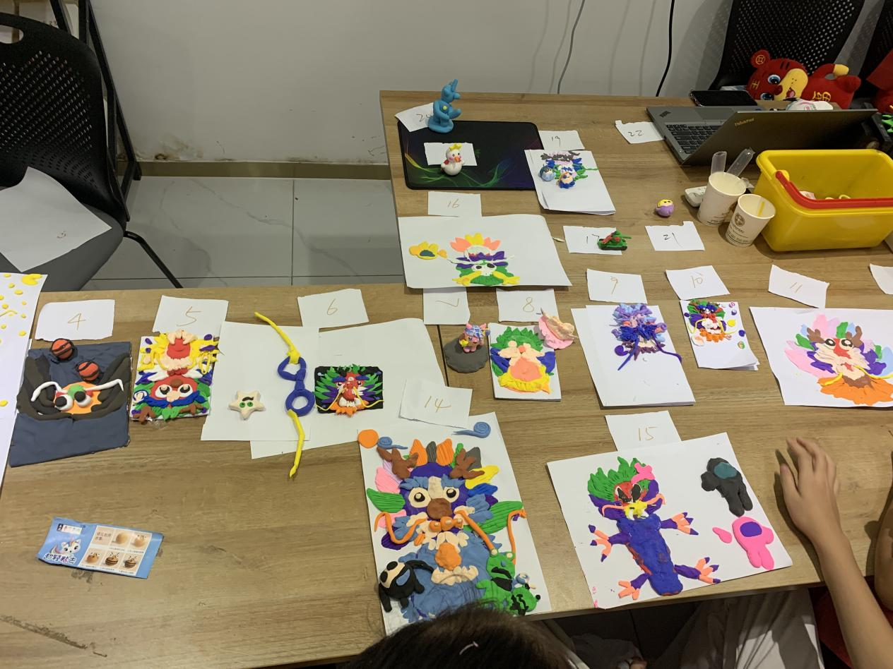 孩子们在这个阶段还学会了桂北的手工绳结、以及用超轻粘土制作中国龙、剪纸等等;