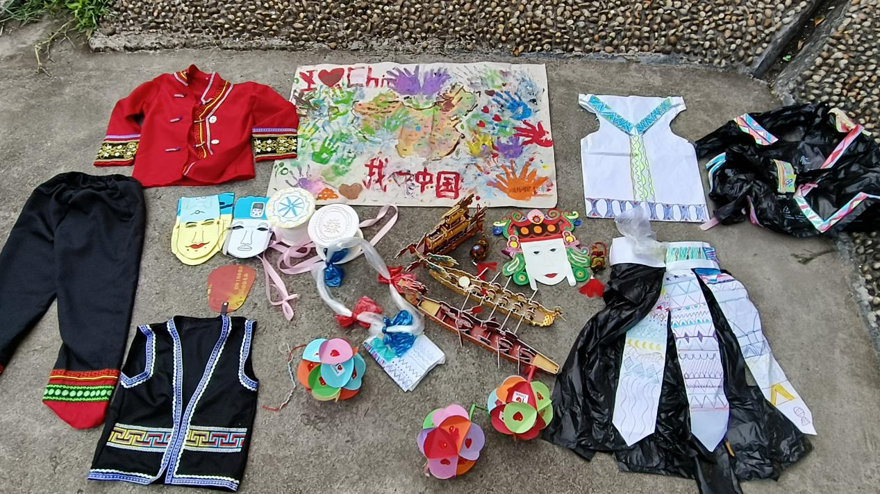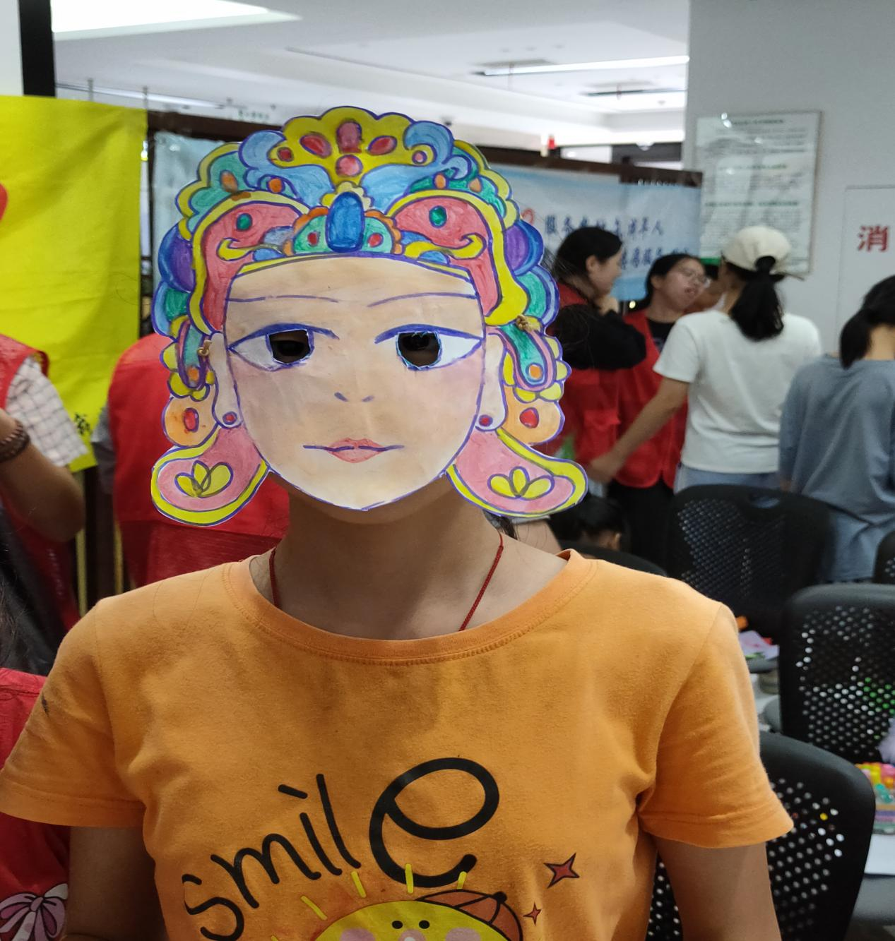 除了这些给社区居民的宣传,我们在给小朋友们上课时,也同样形成了民族共同体意识宣传的闭环。比如我们民族共同体意识的课程、“云支教”不同文化的交融、共同创作一首歌曲等等,甚至在一些民族特色课上,比如毛南族傩面具,当时很多小朋友不喜欢这些面具,青年团成员立即指出,我们要尊重其他民族的文化,这样才能民族团结。