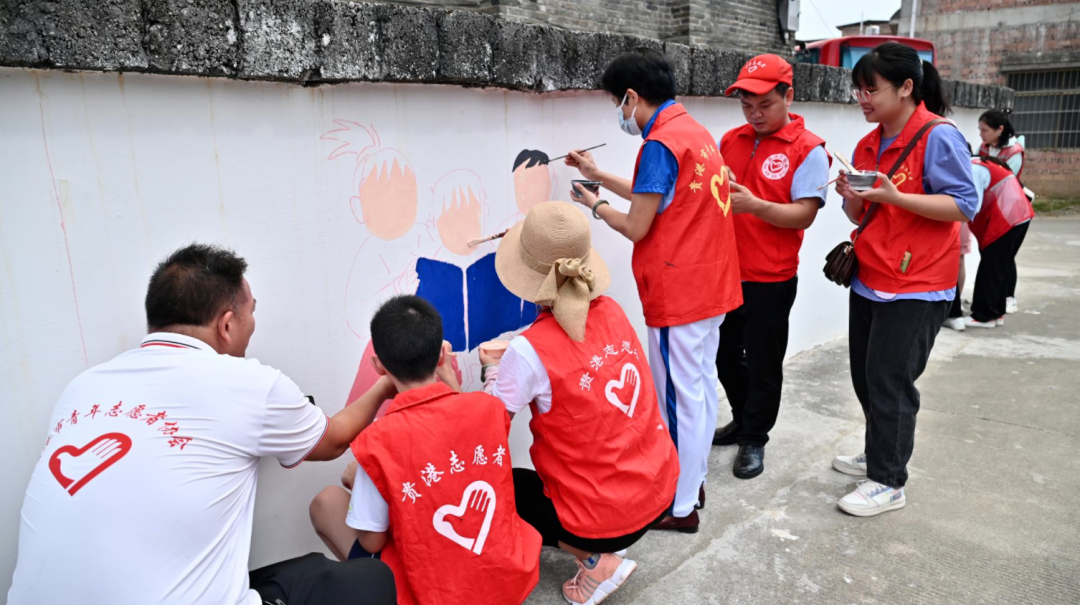 近日,共青团贵港市委员会联合贵港市青年志愿者协会到覃塘区黄练镇居仕村开展“墙绘幸福乡村”活动,通过墙体绘画,刷乡村“新颜”,在潜移默化中滋养群众的精神土壤,用艺术为乡村赋能,让乡村振兴焕发新活力。