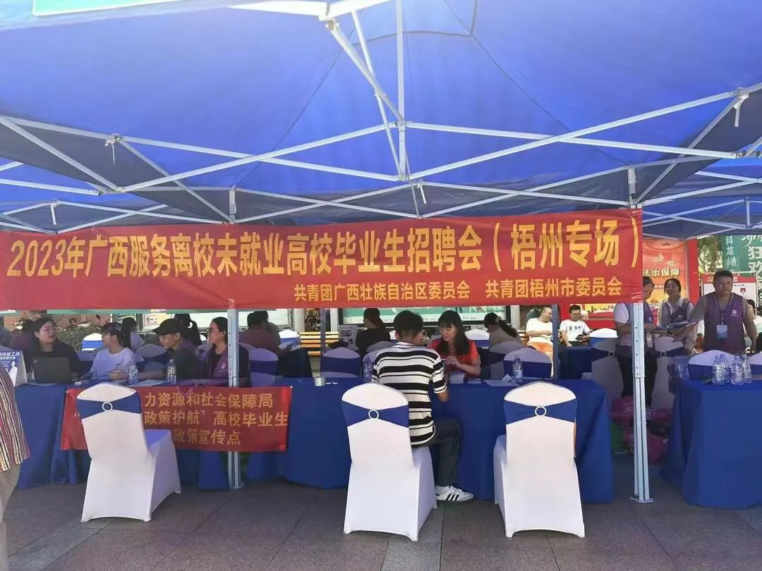 近日,由共青团广西区委员会主办、共青团梧州市委员会承办的2023年广西服务离校未就业高校毕业生招聘会(梧州专场)在潘塘公园法治广场顺利举行。
