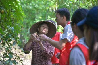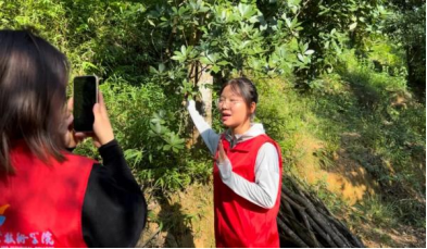 服务团成员们通过考察调研,了解到八角种植是秋香村的主要产业之一,到脱贫户家种植园开展“直播+助农”农村电商产业服务活动。