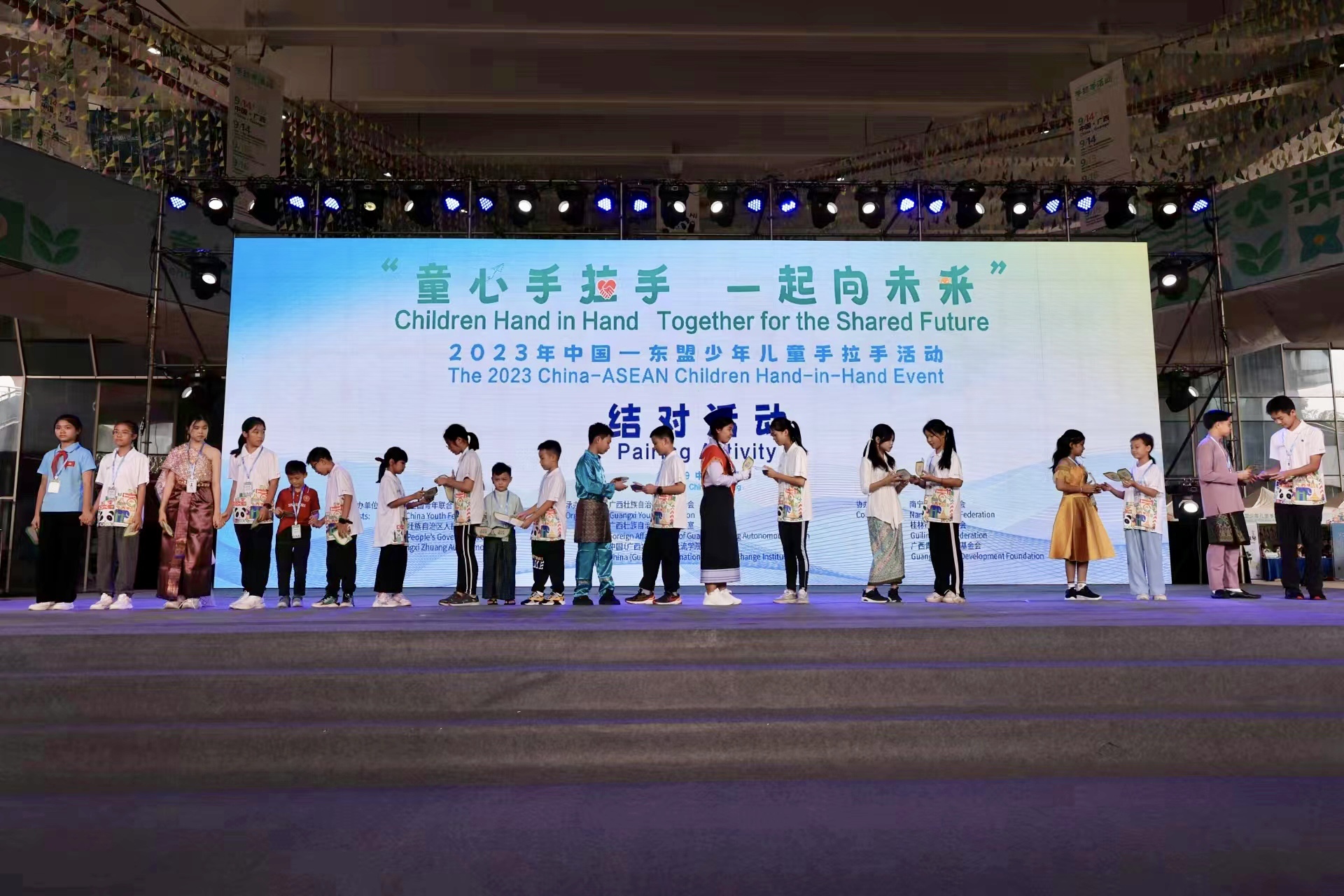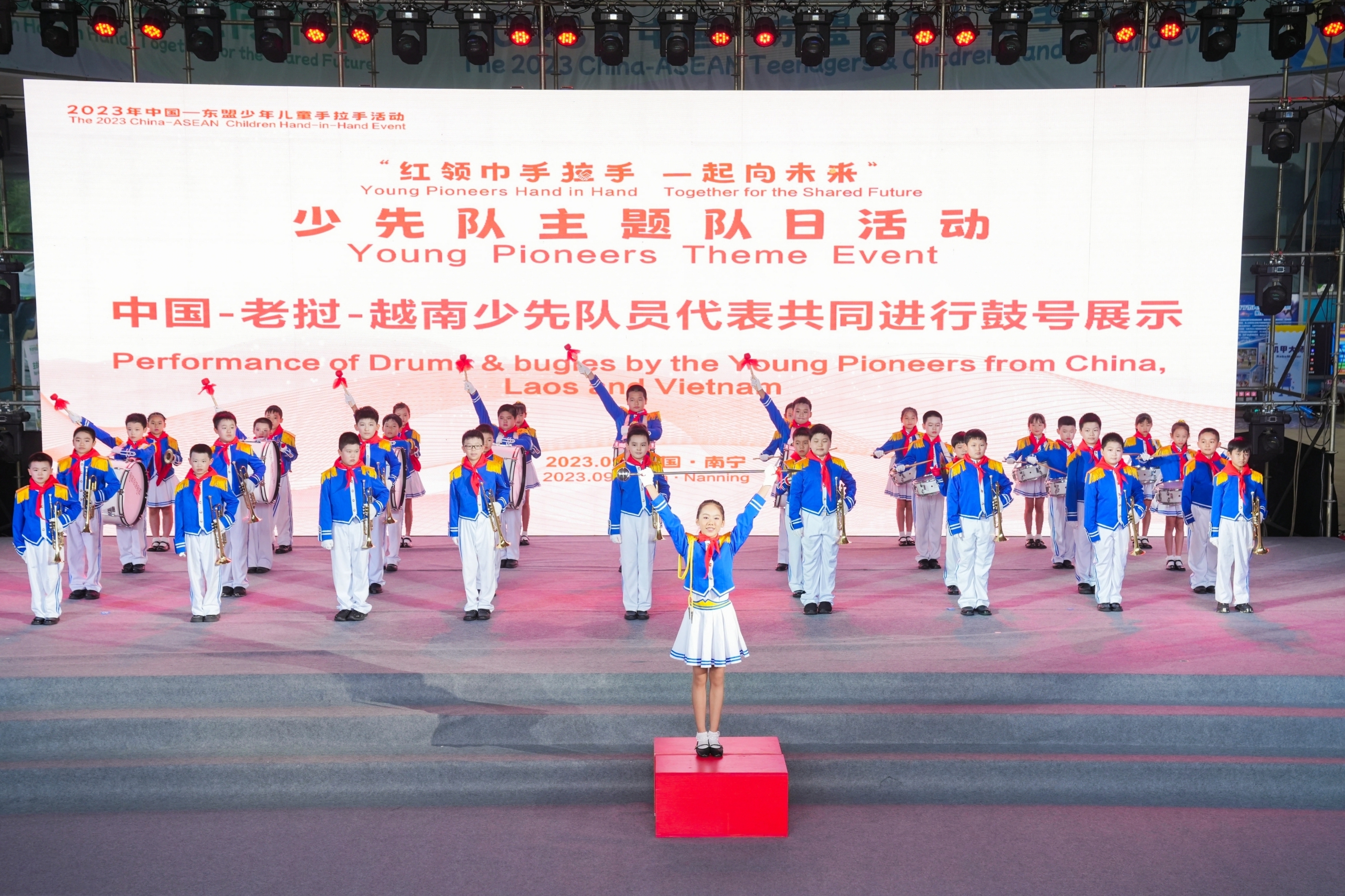 来自中国和东盟十国的100名少年儿童在启动仪式开展手拉手结对活动,中国、老挝、越南的少先队员开展了红领巾手拉手主题队日活动,表达了携手同行、传承友谊的美好心愿。