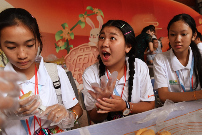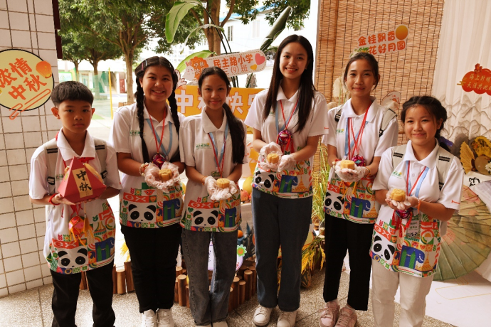 9月15日下午,广西南宁市民主路小学的校园里飘出了一股甜甜的香味,真是让人流了不少口水!寻着香味找过去,原来是中国和东盟的小伙伴正在亲手制作月饼!