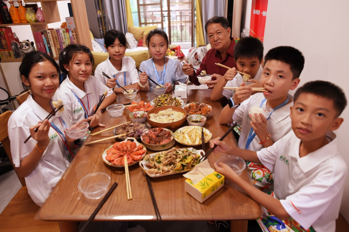 如果小伙伴们上午的关键词是“相识”,那下午的关键词一定是“体验”。从民主路小学出来以后,东盟的少年儿童们跟着自己的结对小伙伴回到了家中,第一次“沉浸式”地体验了一把中国小伙伴放学后的生活。