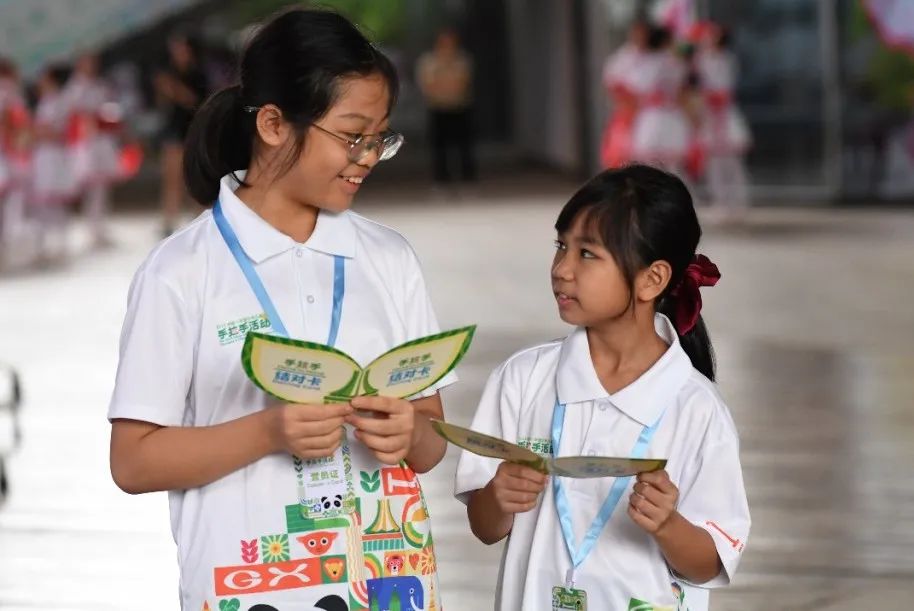 既然是跨越国家的“手拉手”,那仪式感肯定要拉满!所以,启动仪式也分成了好多个环节,这其中有一个非常重要的环节:中国和东盟国家的少年儿童互换“结对卡”,互赠小礼物,结成“手拉手”小伙伴。这些结对卡是大家提前写好的,上面有自己的名字、国籍、联系方式,还有一句自己想对“手拉手”小伙伴说的话。