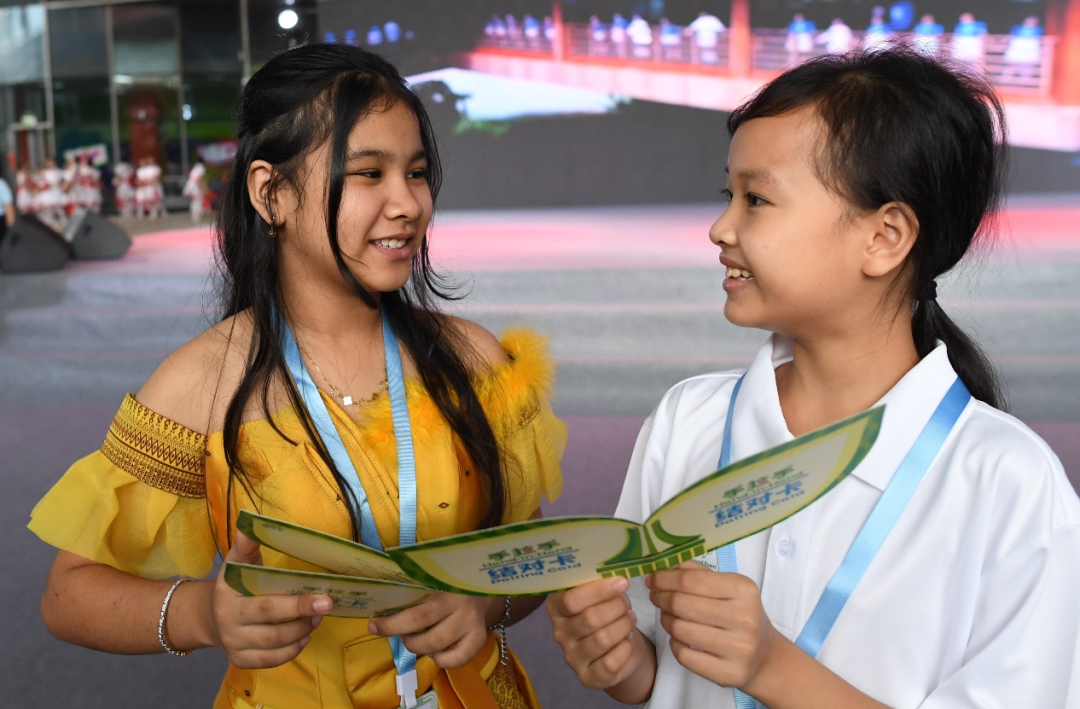 夏帕克提叔叔说:“中国和东盟14岁以下少年儿童超过4亿人,占双方总人口的五分之一,少年儿童手拉手对于实现中国东盟美好家园的梦想具有重要意义。希望同学们在互学互鉴中手拉手、心连心,做中国东盟友好合作的小小传播者、文化交流的小小传承者、美好未来的小小创造者。”