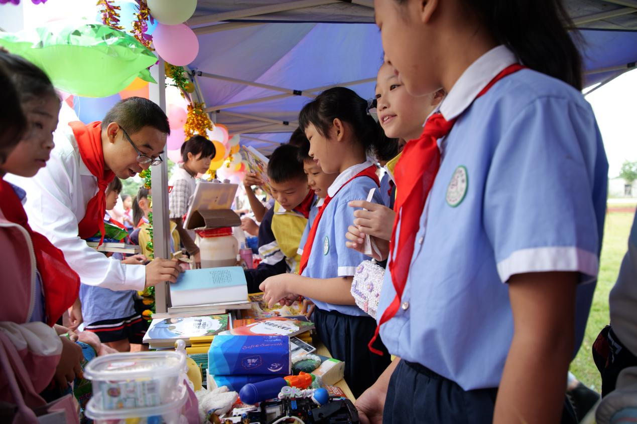 红领巾公益市集中,队员们拿出亲手制作的美食、手工艺品和闲置图书进行义卖,