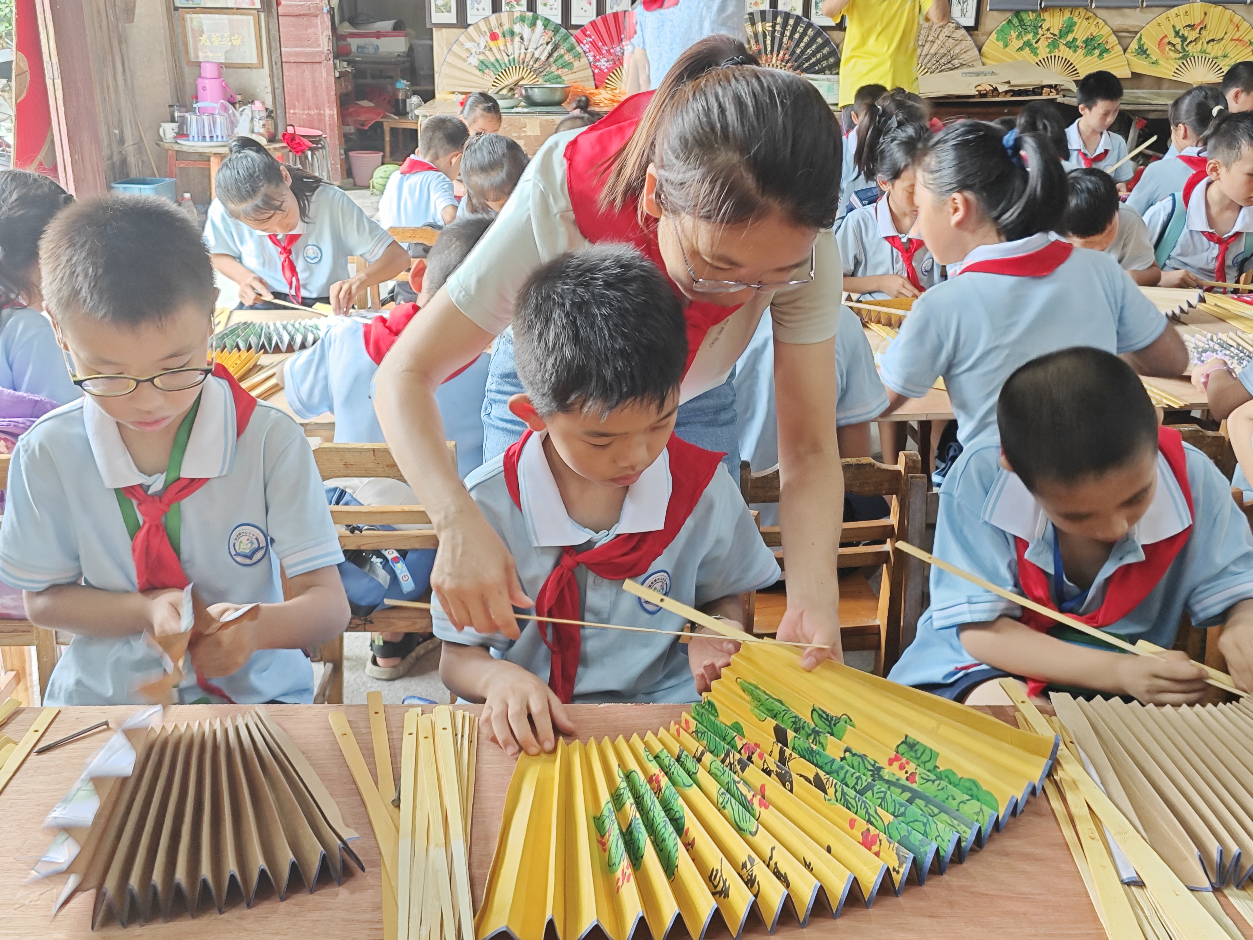 图为阳朔县福利镇中心小学少先队开展人才传承画扇文化研学活动