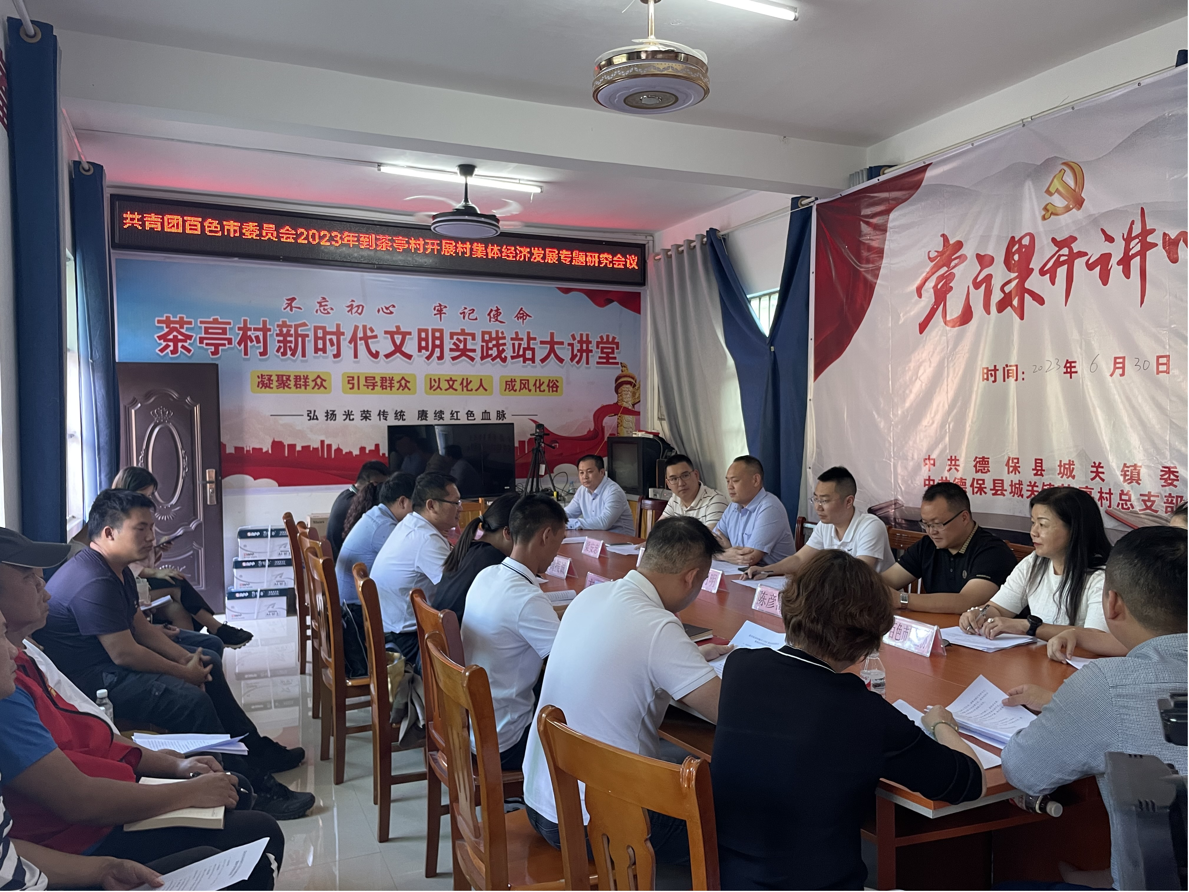 共青团百色市委书记班子一行先是到脱贫户家中,与其面对面交流,从家庭成员基本情况、身体健康状况、家庭收入情况等方面详细了解生活情况及存在的主要困难和诉求,对他们进行了政策宣讲,送去基本生活用品等关爱物资。通过与驻村工作队、“两委”班子座谈交流、实地调研等方式,还详细了解茶亭村在建强基层组织、巩固脱贫成果、推动产业发展、壮大集体经济、实施乡村治理等方面的情况,以及亟待解决的困难、问题。重点对茶亭村的集体经济发展壮大展开了深入分析研讨,进一步理清了村级发展思路。