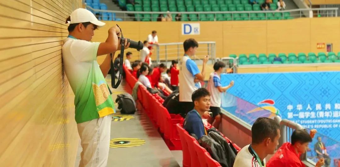 媒体组的“小青芒”们忙碌奔走于赛场上,用镜头捕捉运动员们的精彩瞬间。或站或蹲,随意切换的拍摄姿势是他们对镜头画面的精益求精。