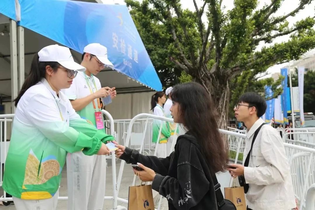 清晨,“小青芒”们便集合到馆场外,积极做好检票工作,引导观众们安全、有序进入馆场内观赛,“小青芒”们用真诚、亲切、热心的服务态度为观众们解答疑惑。