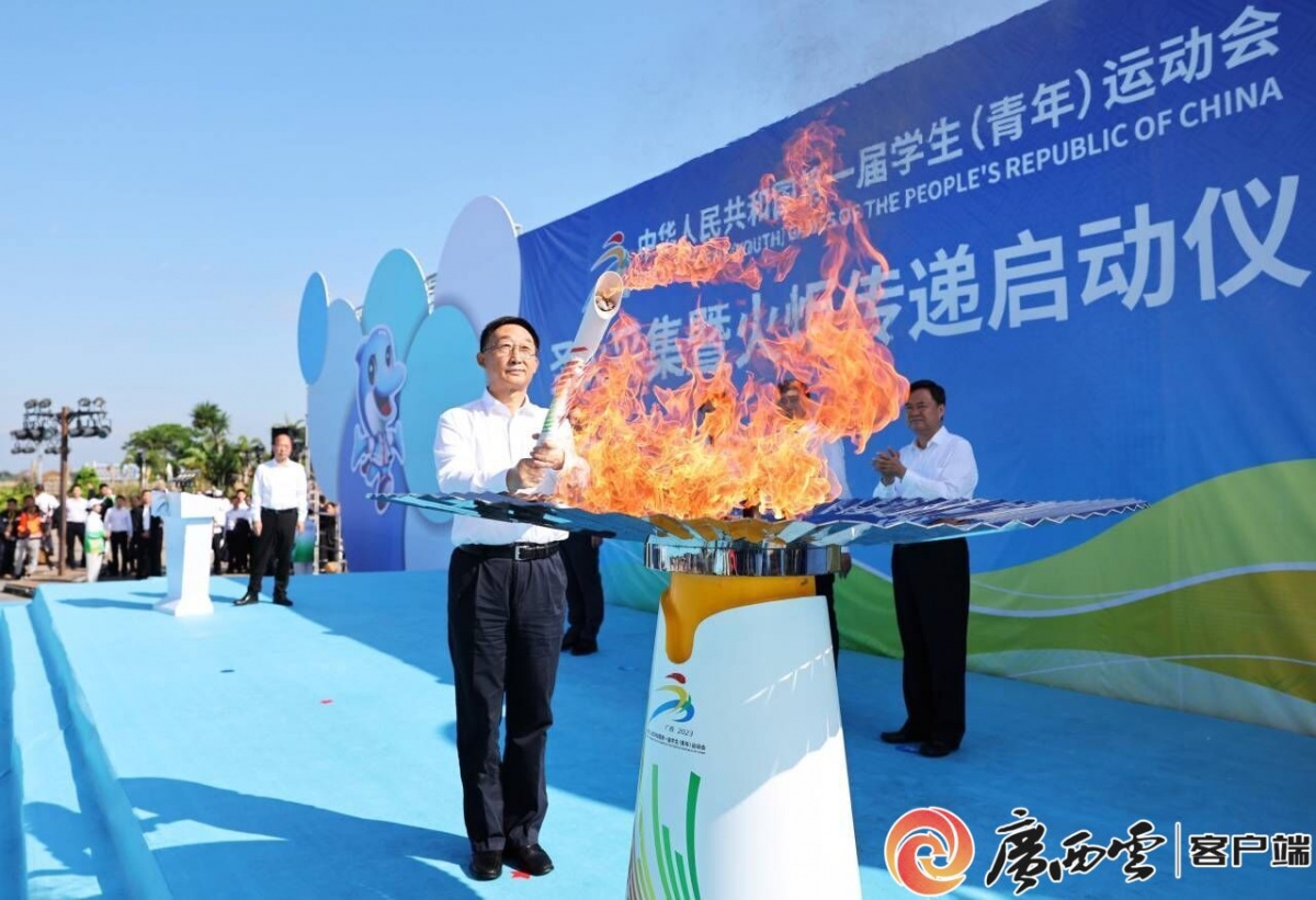 蓝天立在致辞中说,办好首届学青会,是落实习近平总书记关于建设体育强国重要论述的生动实践,是党中央、国务院赋予广西的光荣使命任务。象征着光明、团结和友谊的学青会圣火点燃并在八桂大地传递,必将深入传播学青会“逐梦新时代 青春更精彩”的美好愿景,全面弘扬奥林匹克精神和中华体育精神,充分激发全国人民特别是广大青少年参与体育健身的蓬勃热情。广西将深入贯彻“绿色、共享、开放、廉洁”办赛理念,落实“简约、安全、精彩”办赛要求,集全区之智、举全区之力,有力有序推进各项筹备工作,确保办出高质量、高水平,为体育强国建设增光添彩。
