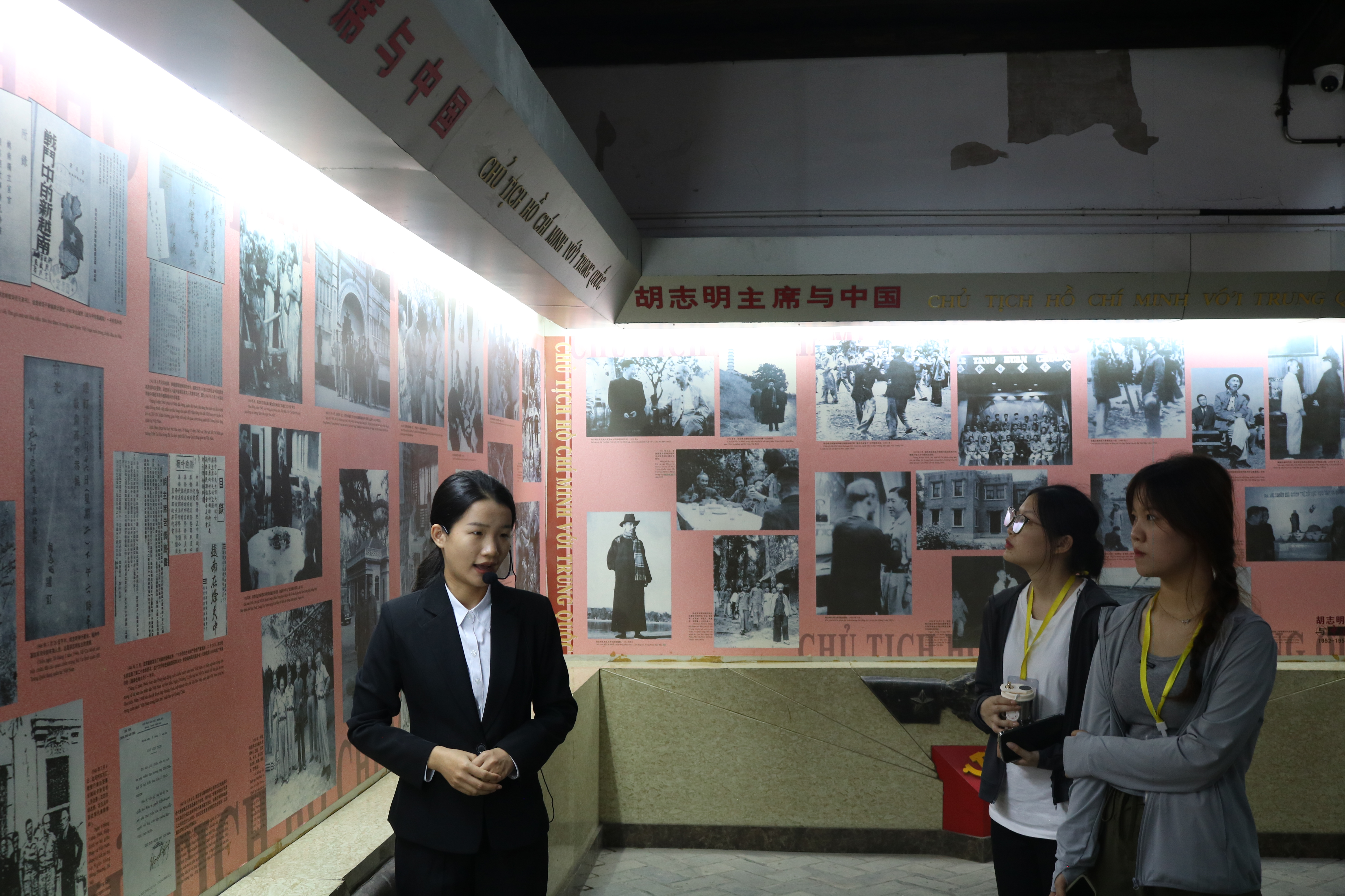第三站,胡志明展馆。越南青年学生们来到胡志明展馆瞻仰胡志明像。中越青年学生们了解胡志明及越南革命者在艰苦的革命战争岁月里与中国人民结下的深厚友谊和并肩战斗的历史篇章,引导同学们不忘历史之情谊,珍惜现代发展之成果。