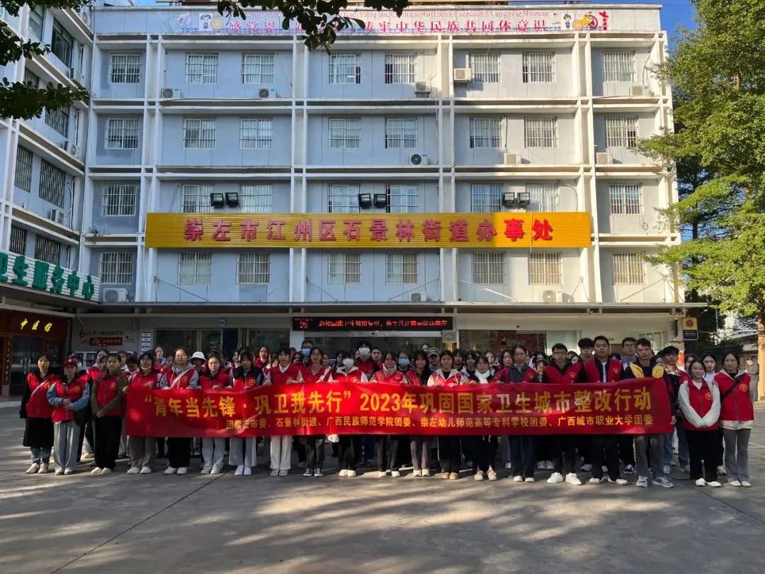 11月17日,共青团崇左市委员会共组织150余名大学生志愿者协助石景林街道开展巩固国家卫生城市环境卫生整治行动。