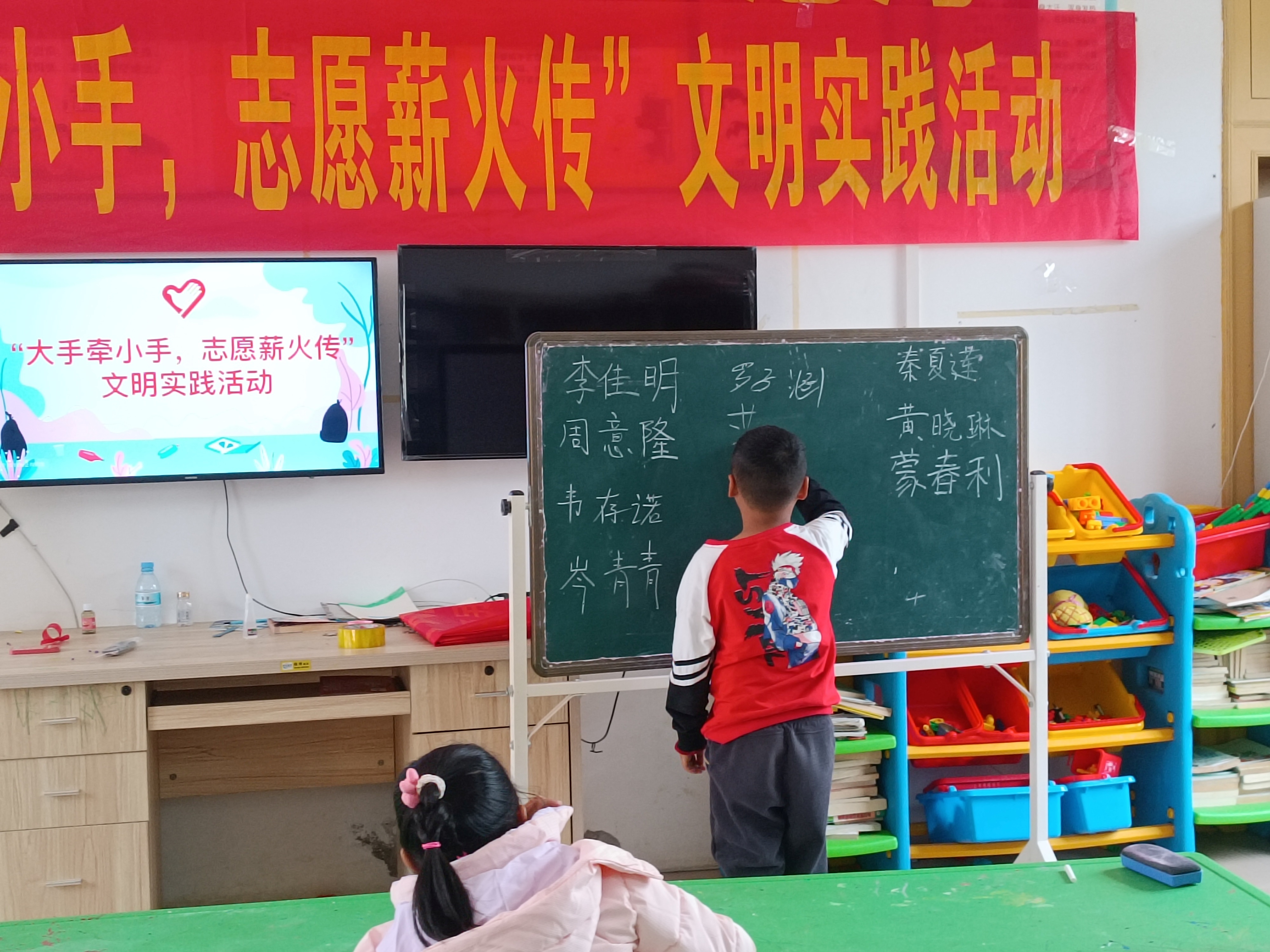 活动中,志愿者以“志愿服务有温度”“文明实践有深度”“项目活动有亮度”和“精准服务接地气”四个板块,通过重现身穿志愿红马甲时的精彩瞬间,讲述志愿照片背后的故事,展现志愿服务工作的累累硕果,与小朋友们分享自己的志愿感悟及收获。随后,志愿者邀请小朋友们依次分享身边的志愿故事,体会志愿者们带来的点滴温暖和感动。小朋友们还写下对志愿者哥哥姐姐们想说的话,以及对志愿服务活动的期待,表达希望成为传递志愿之火接力者的美好愿望。一颗志愿服务的种子在孩子们纯净的心中种下,志愿服务精神在传递,文明实践之花在萌芽。