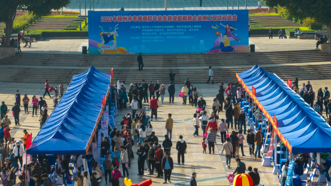 12月2日,2023年梧州市冬季高校毕业生就业暨服务企业用工现场双选会在梧州市政广场举行。