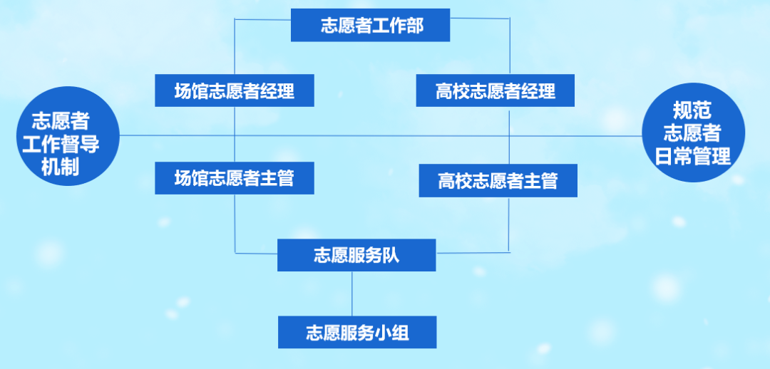 建立“学青会执委会志愿者工作部——场馆志愿者经理/高校志愿者经理——场馆志愿者主管/高校志愿者主管——志愿服务队——志愿服务小组”的“横向协调 纵向联动”工作协同体系,有针对性地强化志愿者日常考核记录评价,加强对学青会志愿者的日常规范管理。