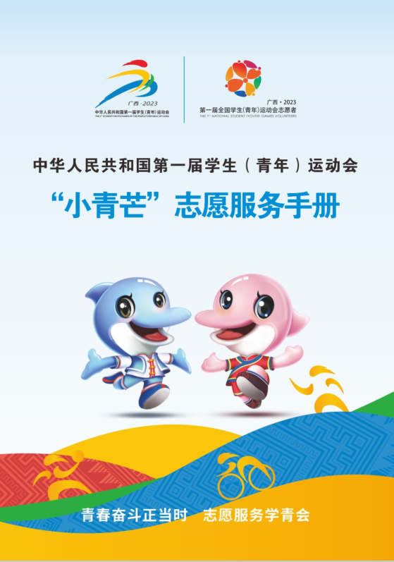 从赛会基本情况、大型赛会志愿服务工作规范、赛场场馆、服务锦囊等方面设计制作《中华人民共和国第一届学生(青年)运动会“小青芒”志愿服务手册》,帮助全体“小青芒”学习掌握大型赛会志愿服务的工作理念和方法。