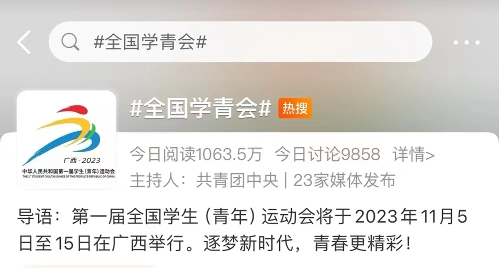 共青团中央及各省级团委在内的团属新媒体矩阵全线直播开闭幕式,引发观看热潮,仅团中央本级累计覆盖超过1500万人观看,直播高峰时段超过101万人通过团属平台观看。团属新媒体在微信、微博、B站、抖音等全平台开展“学青会”专栏,集中发布的图文信息阅读量超过3100万;设置的8个微博话题登上热搜,累计关注度超过8500万;围绕学青会盛况、运动健儿和志愿者风采、广西文旅等主题制作的《大学生志愿者主打一个眼里都是活》等网络文化产品实现“破圈”传播,累计传播量超过1500万。截至目前,团属新媒体关于学青会相关内容网络关注度和传播总量超过2亿,充分展现了壮美广西和中国青年的青春风采。