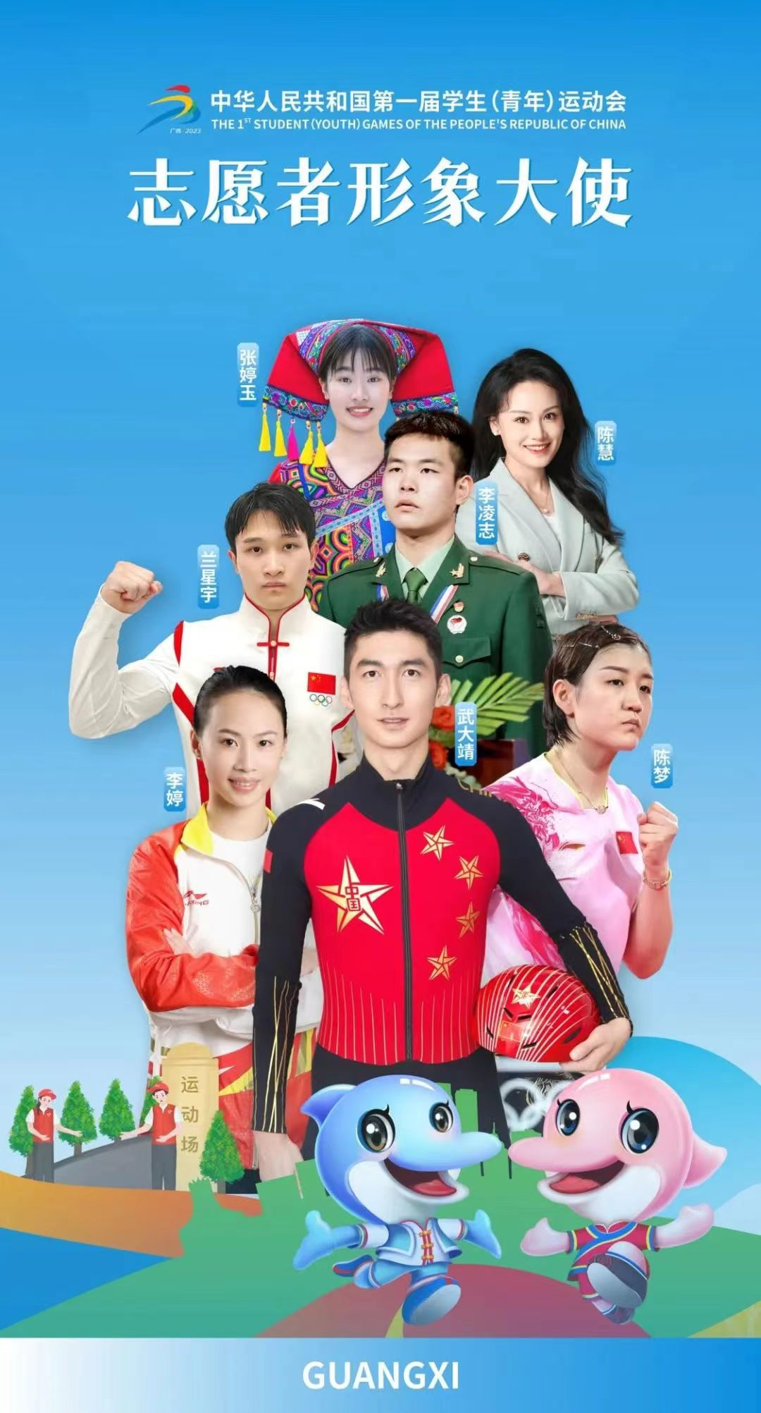 (2)邀请奥运冠军武大靖、陈梦、李婷,世界大运会冠军兰星宇,以及传统文化传承人陈慧、见义勇为模范大学生李凌志、红色文化志愿讲解员张婷玉等7名区内外优秀青年代表成为首届学青会志愿者形象大使,示范带动人人争当学青会志愿者。