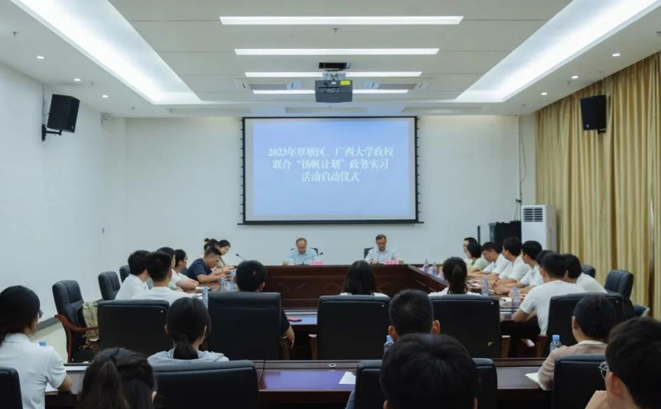 广西大学与贵港市覃塘区联合开展 2023 年“扬帆计划”政务实习△启动仪式现场(图源 西大团学小微)