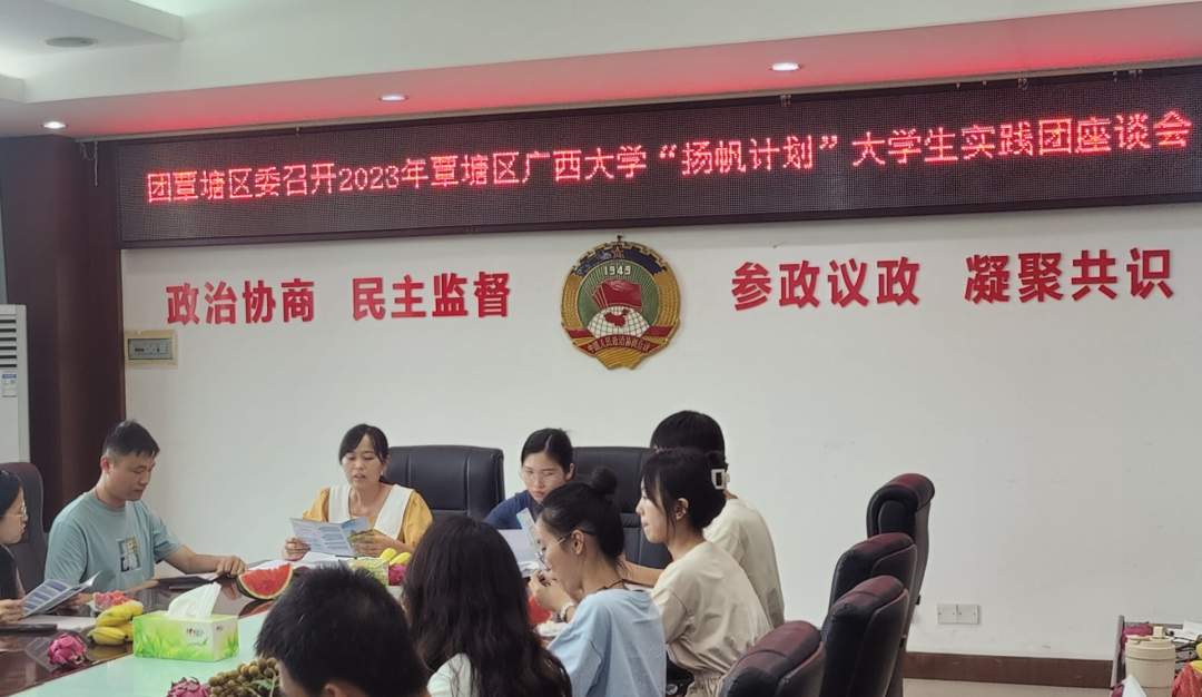 覃塘区开展“扬帆计划”大学生实践团座谈会(图源 覃塘区共青团)