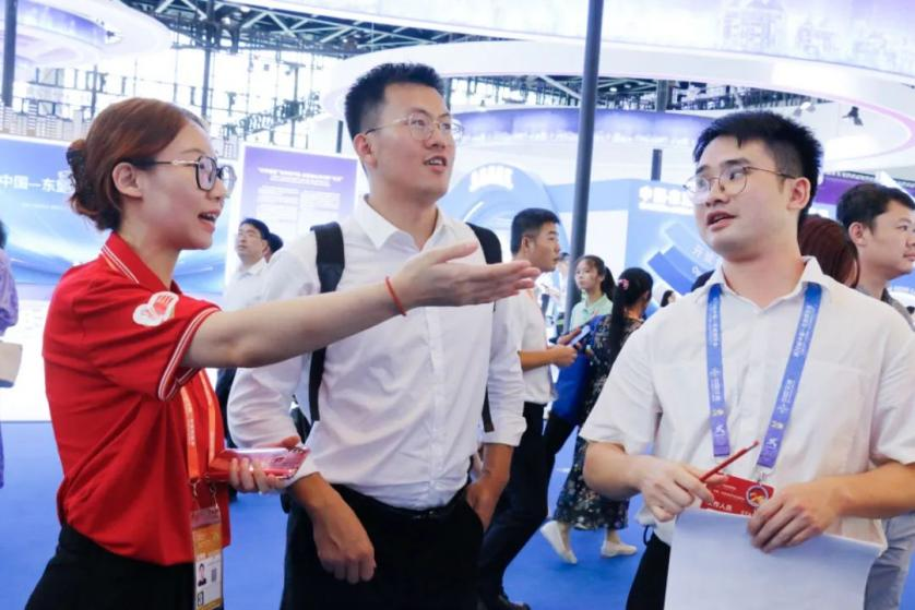实习生在第20届中国—东盟博览会、中国—东盟商务与投资峰会为游客提供道路信息咨询(图源 西大团学小微)