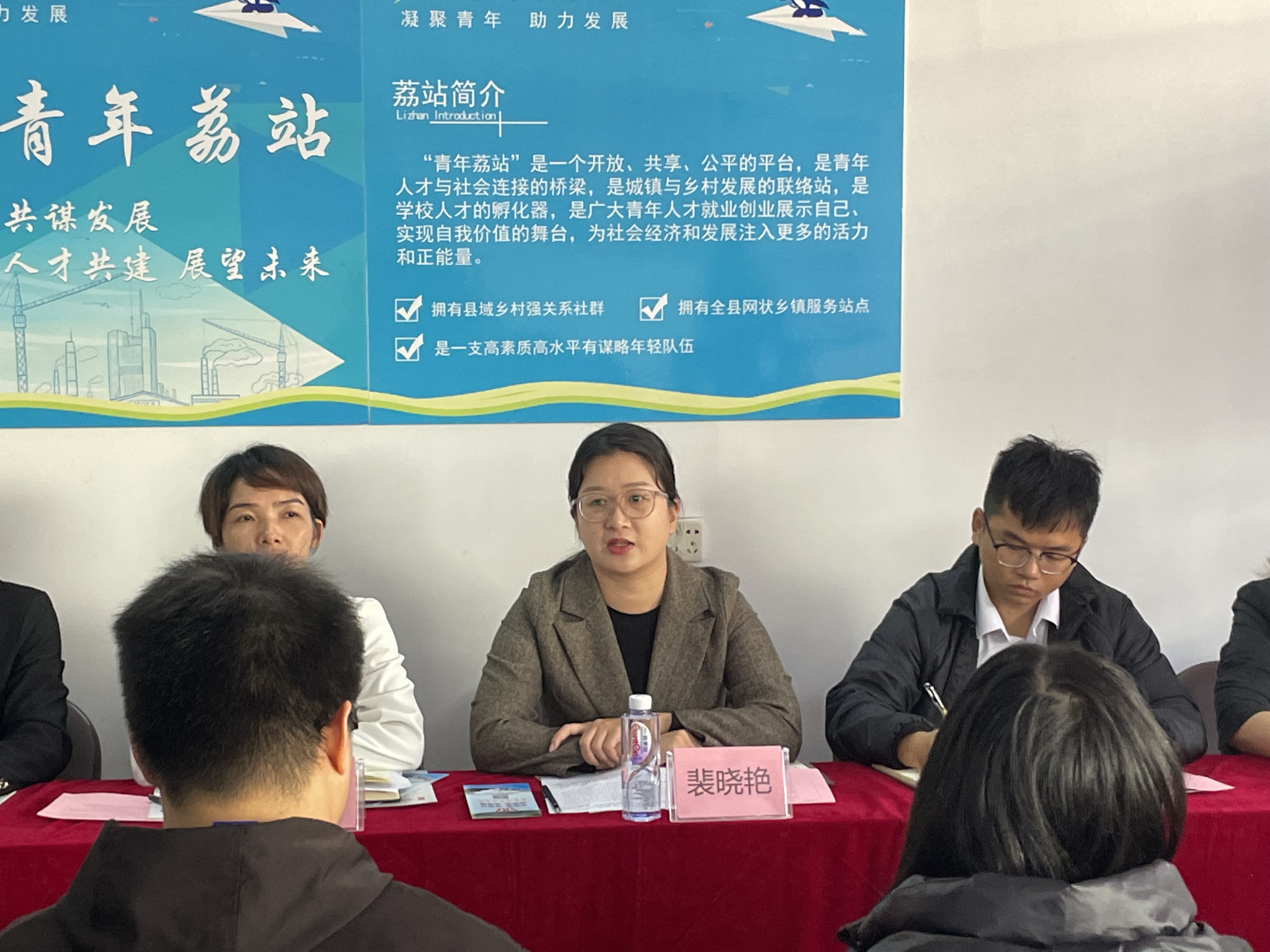 揭牌仪式后,与会人员参观了灵山县“青年荔站武利服务站”,并就青年就业创业与发展进行了座谈交流。青年发展交流座谈会上,灵山县人力资源社会保障局相关工作人员、青年企业代表分别就就业创业政策、企业文化等方面作了宣讲。