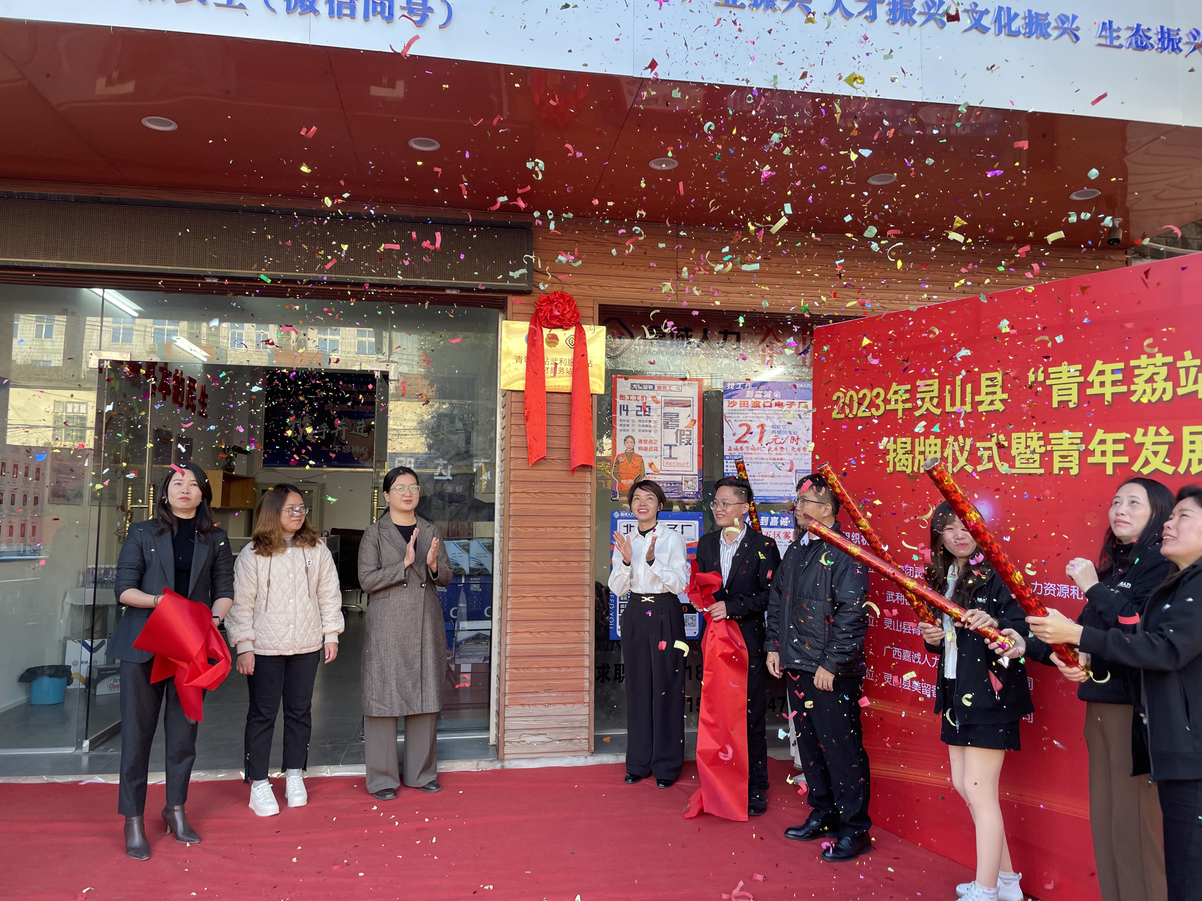 为深入贯彻落实习近平总书记关于青年工作的重要思想,认真落实中长期青年发展规划要求,坚持为青年谋发展、为灵山谋未来,进一步助力青年人才在灵就业、返灵来灵创业,鼓励更多青年人才融入灵山、扎根灵山、奉献灵山,12月8日,灵山县“青年荔站武利服务站”正式揭牌成立,共青团灵山县委员会副书记裴晓艳、武利镇党委副书记黄满、灵山县青年大学生就业创业促进会、青年企业和青年代表等40人参与了揭牌仪式。