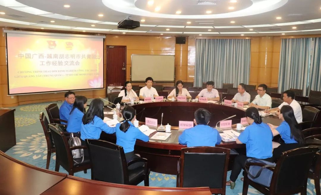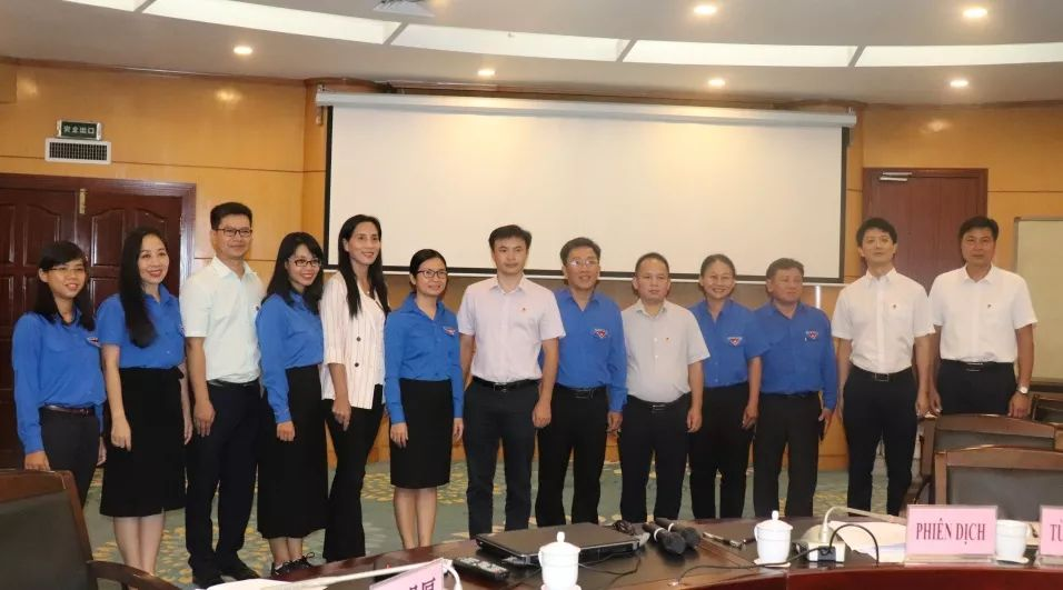 On the morning of August 26th, 2019, seven young leaders from Ho Chi Minh Committee of Ho Chi Minh Communist Youth Union of Vietnam visited the “Family of Youth”, Training Center and canteen of China (Guangxi) International Youth Exchange Institute, accompanied by Mr. Liao Changyou, Deputy Secretary of the Guangxi Committee of CYLC, and Mr. Chen Zhijie, President of the Institute.