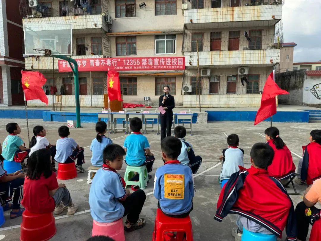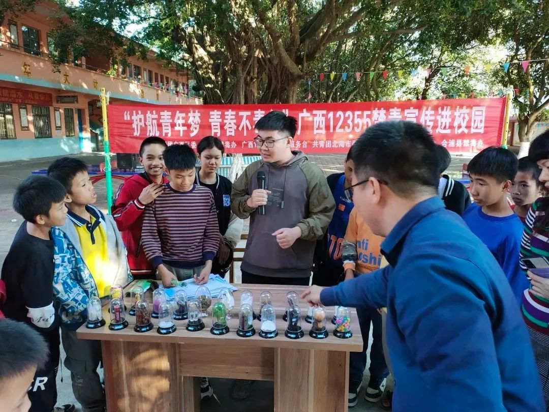 近日,共青团广西区委联合自治区禁毒办、广西12355青少年服务台、共青团北海市委员会、共青团合浦县委员会、合浦县禁毒办在合浦县石湾镇东江小学开展“护航青年梦 青春不毒行”广西12355禁毒宣传进校园活动。