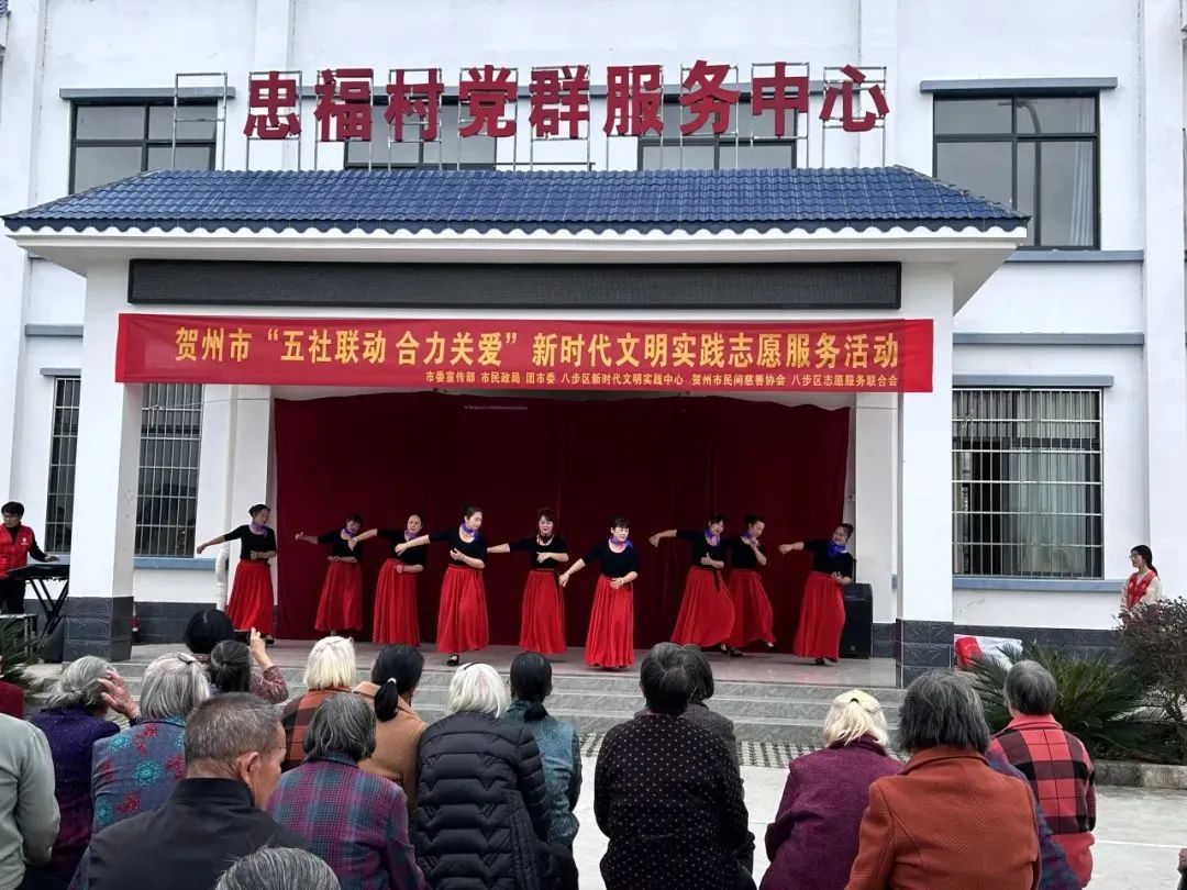 12月14日,共青团贺州市委员会联合贺州市委宣传部、贺州市民政局、八步区新时代文明实践中心等单位前往八步区大宁镇忠福村新时代文明实践站开展贺州市“五社联动 合力关爱”新时代文明实践志愿服务示范活动。