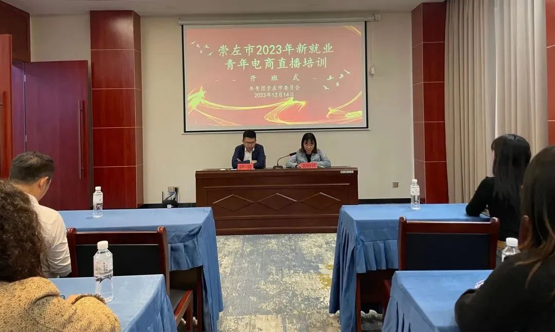 12月14日-15日,由共青团崇左市委员会主办,崇左市青联、共青团宁明县委员会承办的2023年崇左市新就业青年电商直播培训在宁明花山温泉国际酒店举办。来自崇左市7个县(市、区)的青年主播、电商营销青年、快递青年、文创青年、社会组织青年等新业态新就业群体代表共30余人参加培训。