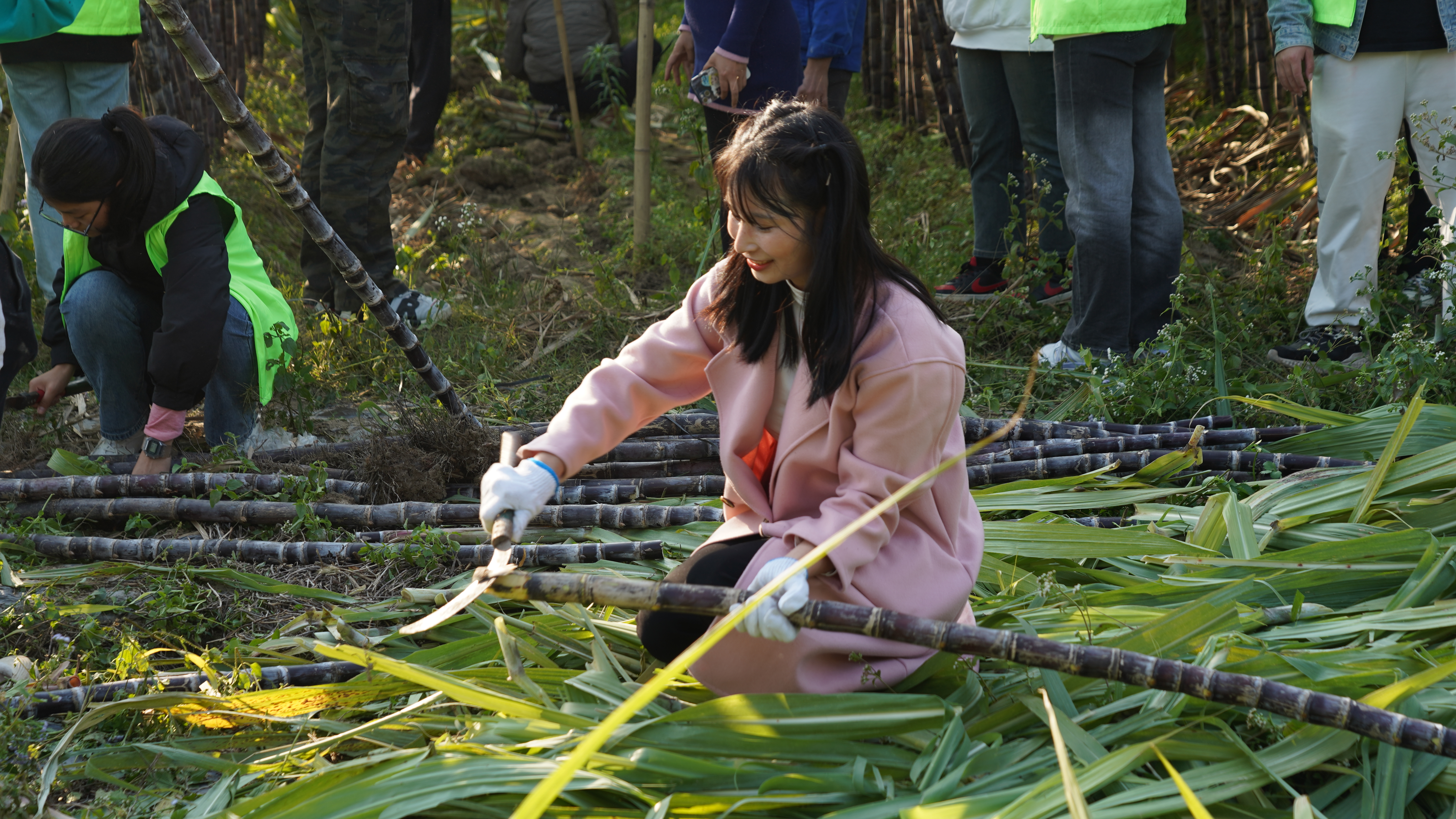 当天,中越学生把砍蔗后特意留下的蔗种带回校内的智慧农业综合实验基地。在专家和老师指导下,两国青年亲手把一根根见证中越友谊和甜蜜事业的蔗种埋入田地中。随后,两国青年还在校内文化广场种下3棵友谊树。