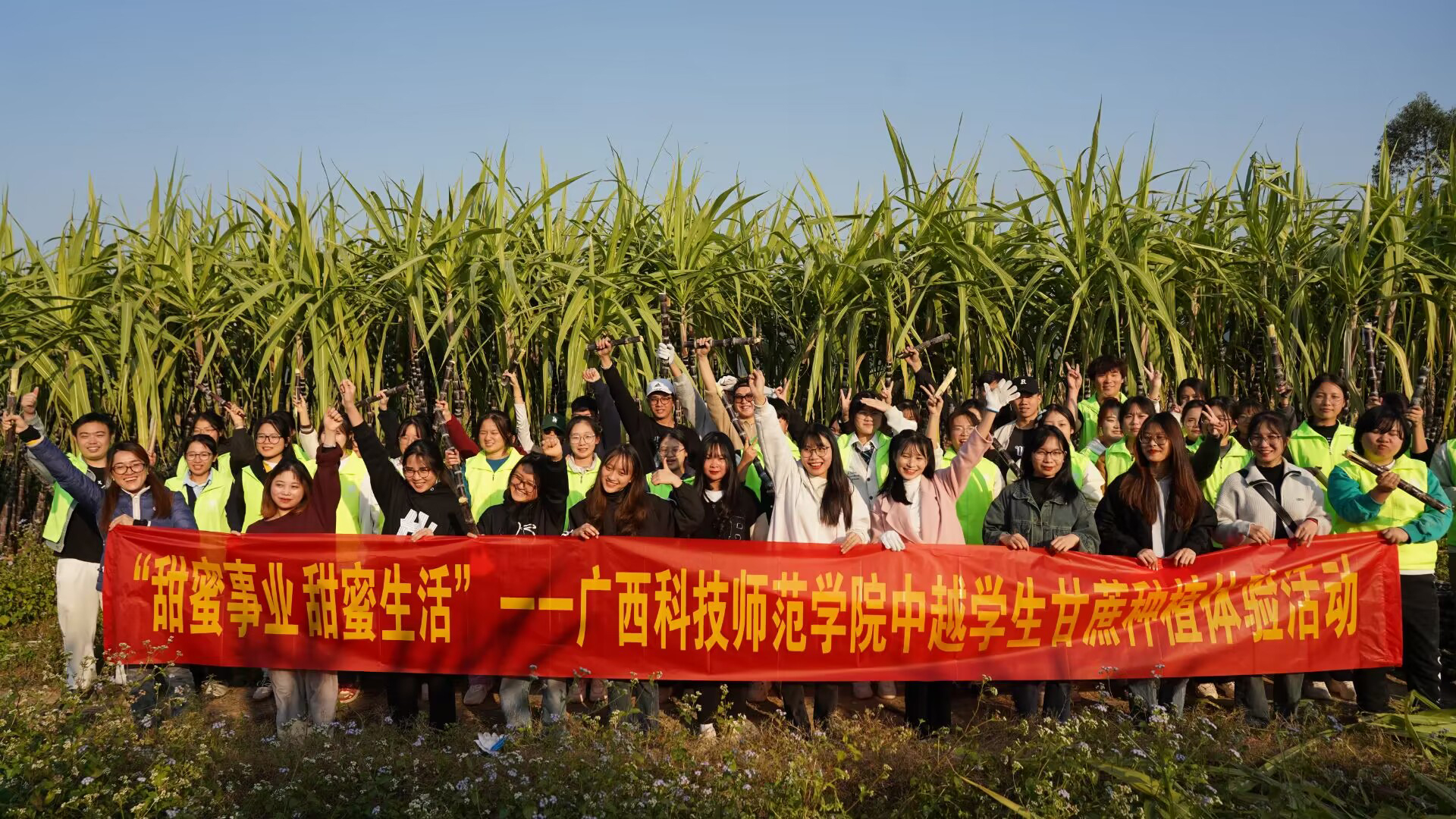 中越友好的根基在人民、未来在青年。12月26日,晴空万里,广西科技师范学院的中国学生与越南留学生走进来宾市兴宾区良塘镇近凌屯的百亩连片蔗海,开启甜蜜的友谊之旅、交流之旅。