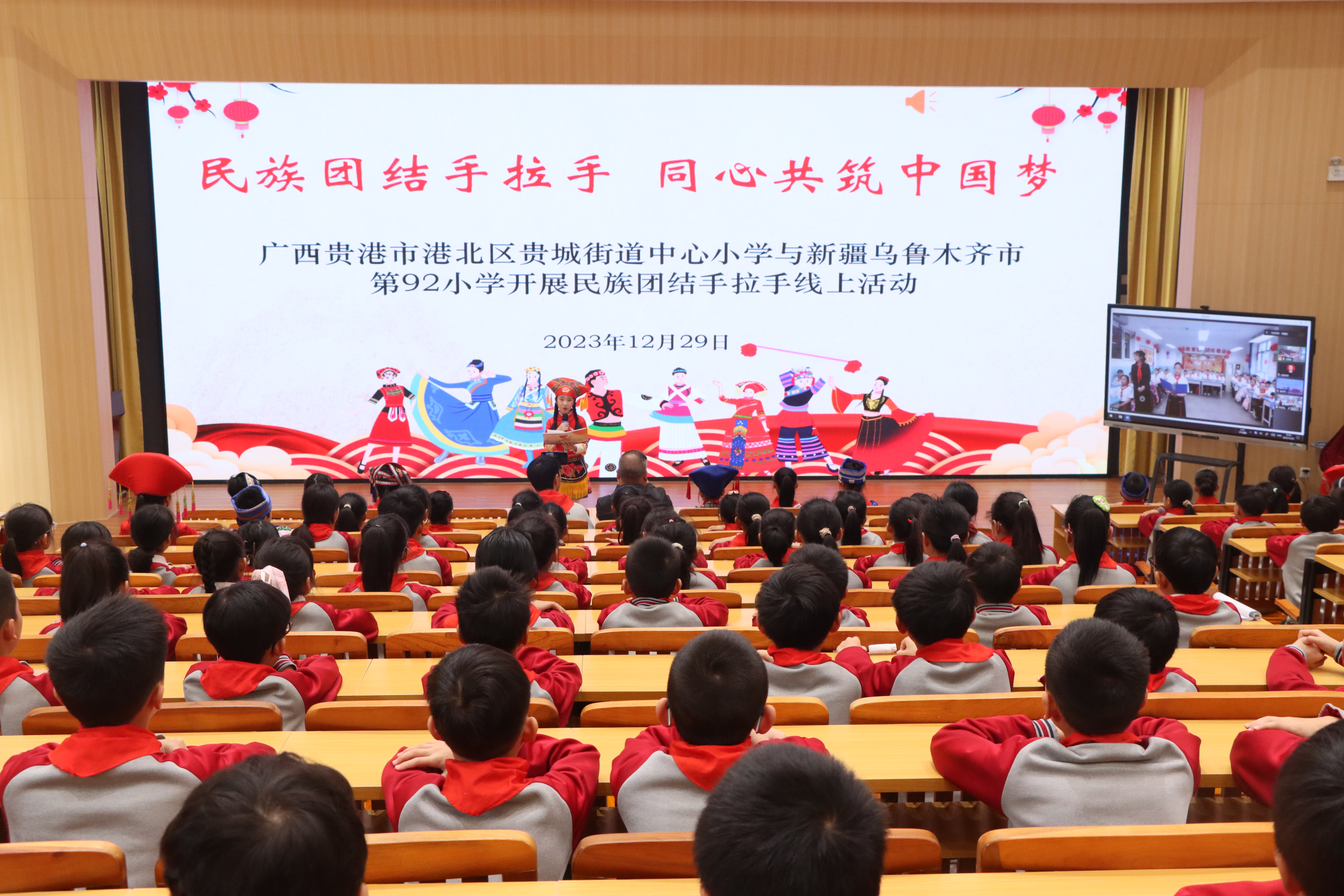 12月29日上午,港北区贵城街道中心小学少先队员与新疆乌鲁木齐市第92小学少先队员一起进行云端“手拉手”,相互传递新年的祝福。