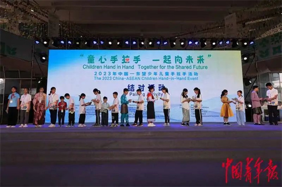 On September 15, the 2023 China-ASEAN Children Hand-in-Hand Event, hosted by the All-China Youth Federation and the People’s Government of Guangxi Zhuang Autonomous Region, launched in Nanning, Guangxi. Mr. Shapkat Wushur, Secretary of the Secretariat of the Central Committee of the Communist Youth League of China and People in charge of the All-China Youth Federation, and Mr.Qin Rupei, Member of the Party Group of the People's Government of Guangxi Zhuang Autonomous Region, Secretary of the CPC Committee of the State-Owned Assets Supervision and Administration Commission of Guangxi Zhuang Autonomous Region attended the event and delivered speeches. 100 children from China and the ten ASEAN countries paired up for the Hand in Hand Activity at the launching ceremony. Young pioneers from China, Laos and Vietnam carried out Young Pioneers Hand-in-Hand Theme Day Activity, expressing their sincere wishes to work together and pass on friendship.