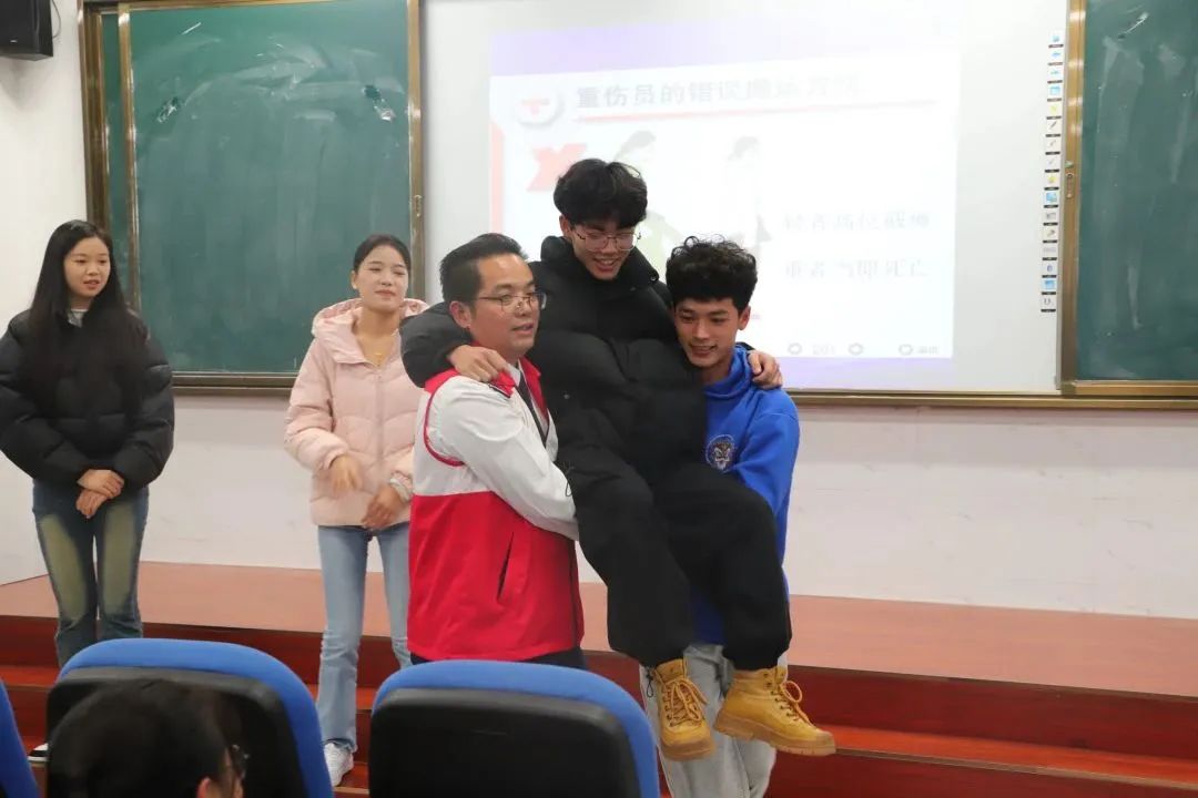 第十一届中国青年志愿者优秀个人、港北区西江街道石羊塘社区党委书记、居委主任李锐华(左三)作志愿服务活动应急处置和救治指导