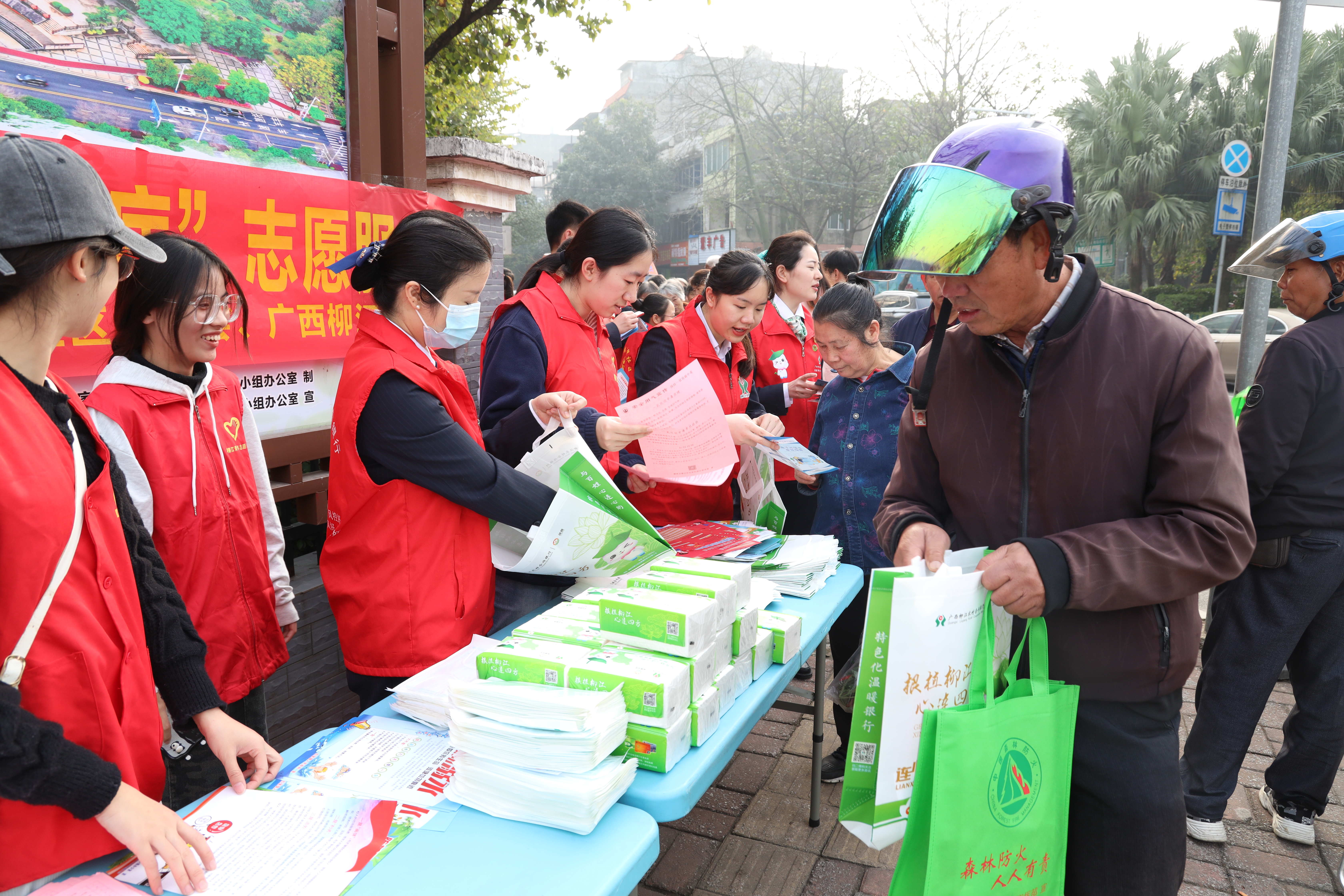 “勤俭节约不浪费,文明过年好处多......”活动中,柳江区青年志愿者在柳江区文化宫广场通过发放宣传册的方式向居民群众宣传“文明暖心,破陈规树新风”相关知识,用通俗易懂的语言向辖区居民讲解文明过节的意义,并一一列举厚葬薄养、低俗婚闹等不文明行为带来的坏处,引导居民文明过节、禁燃烟花爆竹、禁烧杂草垃圾等,过文明生态春节,争做保卫蓝天的践行者,同时提倡“光盘行动”,抵制餐饮浪费。