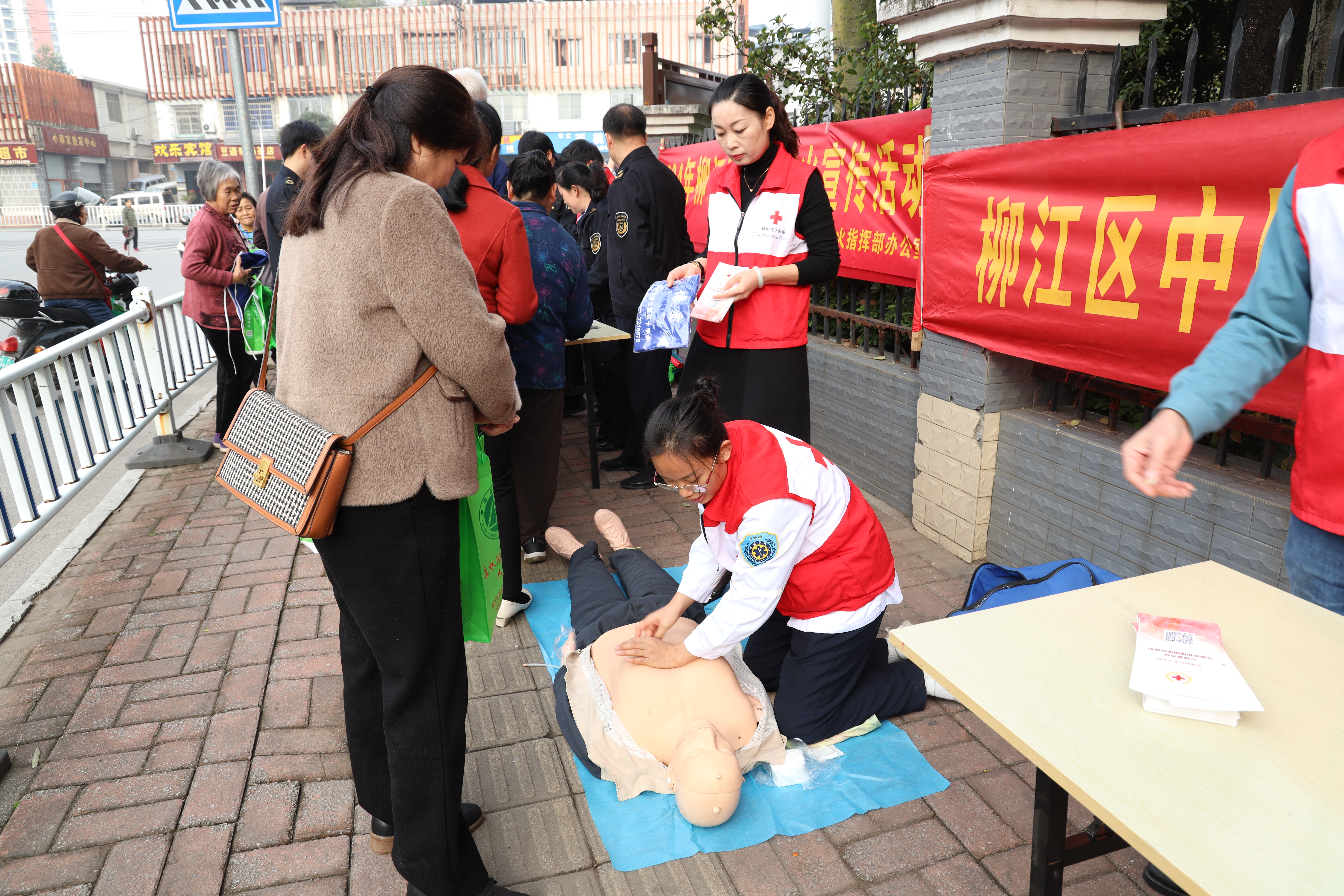 春运的序幕逐渐拉开,在外游子即将踏上返乡路程,为了更好服务广大群众,现场通过发放口罩、纸巾等“暖心包”给疲惫的旅客送上温暖。此外,青年志愿者还向过往的旅客发放冬季卫生健康知识、禁毒防艾、垃圾分类、防电信诈骗等宣传资料,同时还通过理论讲授、现场演示相结合的形式详细讲解了心肺复苏的具体步骤。