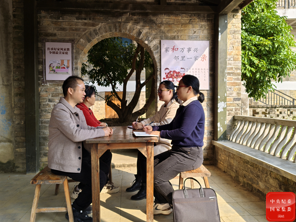 广西壮族自治区玉林市纪委监委将家庭家教家风建设融入乡村治理,开展“谈家风•传家训”主题活动,教育引导干部群众讲道德、守规矩、重家风,助力乡村振兴。图为纪检监察干部在容县容西镇祖立村倾听了解当地优秀家风家训故事。(广西壮族自治区玉林市纪委监委供 杜菲菲 摄)