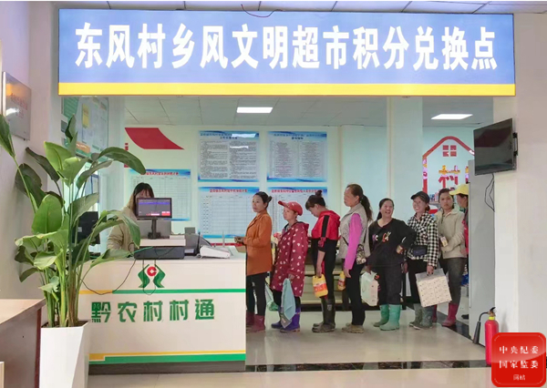 为激发群众自主参与乡村治理的积极性、引领崇礼向善的文明新风,贵州省天柱县通过积分奖励超市的形式,引导村民参与村级环境整治、邻里互助等各项文明实践志愿活动。图为群众在东风村积分超市开展积分兑换。(贵州省天柱县纪委监委供 杨朝斌 摄)