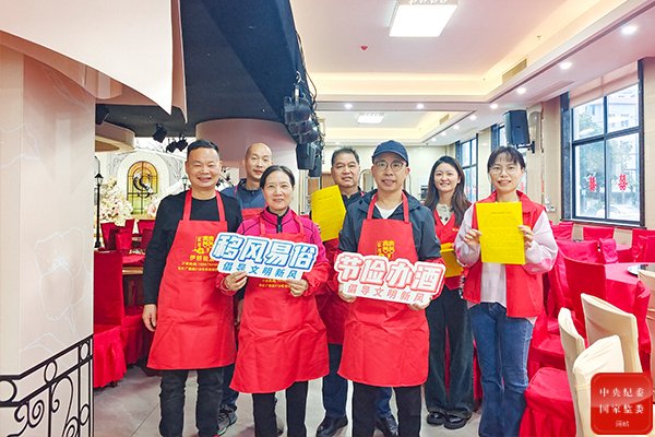 俭美家宴树新风,办酒节俭不铺张。浙江省海宁市为弘扬社会新风,抵制餐饮浪费,号召大家做文明餐桌的宣传者、倡导者和实践者,把文明就餐、节约光荣的观念送入千家万户。图为近日志愿者在办酒农户家中发放节俭办酒倡议书。(浙江省海宁市纪委监委供 张虞林 摄)