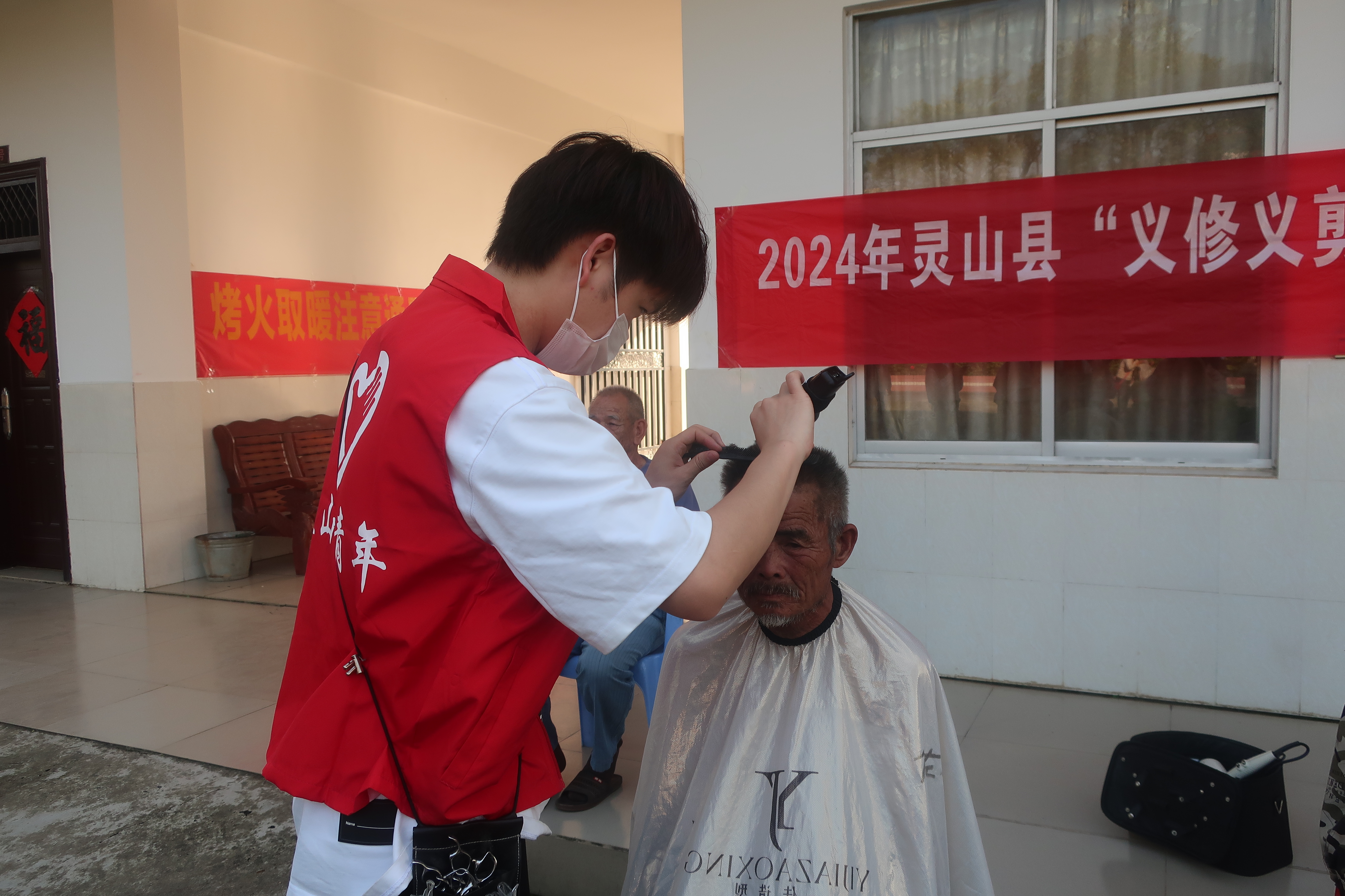 在义剪活动区域,义剪志愿者热情地询问村民的需求,运用娴熟、精湛的技术,为每一位村民“量身定制”合适的发型。此外,针对敬老院老人行动不便的难题,志愿者服务上门,一边亲切地与老人拉家常,一边精心地为老人修剪头发,将“温暖”送到老人身边。